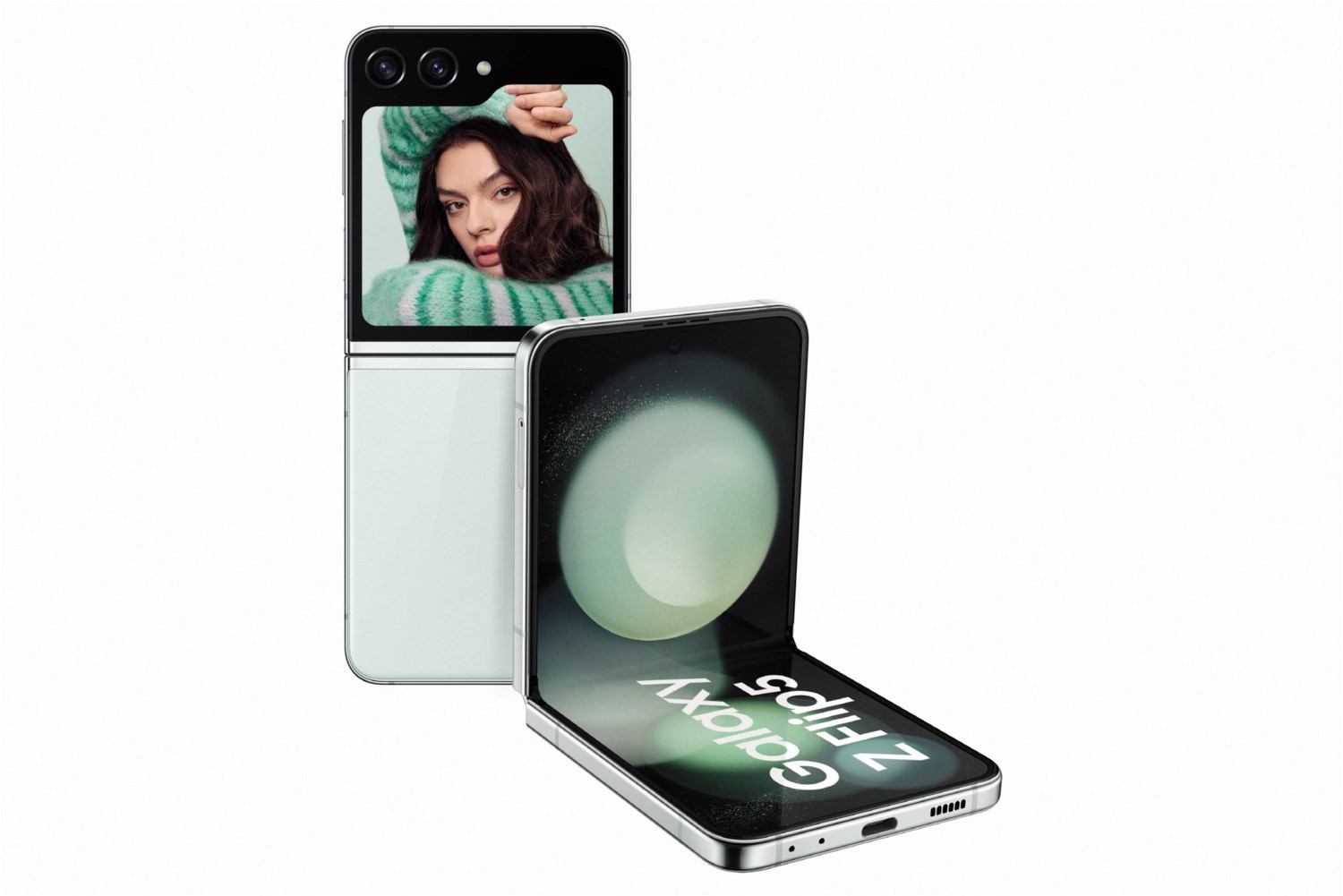 Entdecke das 3,4 Zoll große Frontdisplay des Galaxy Z Flip5, entwickelt für deine Selbstentfaltung. Dank des überarbeiteten Flex-Scharniers lässt sich das Smartphone jetzt flacher als seine Vorgängermodelle zusammenklappen, sodass es genauso einfach in deine Tasche passt wie in deine Hände.