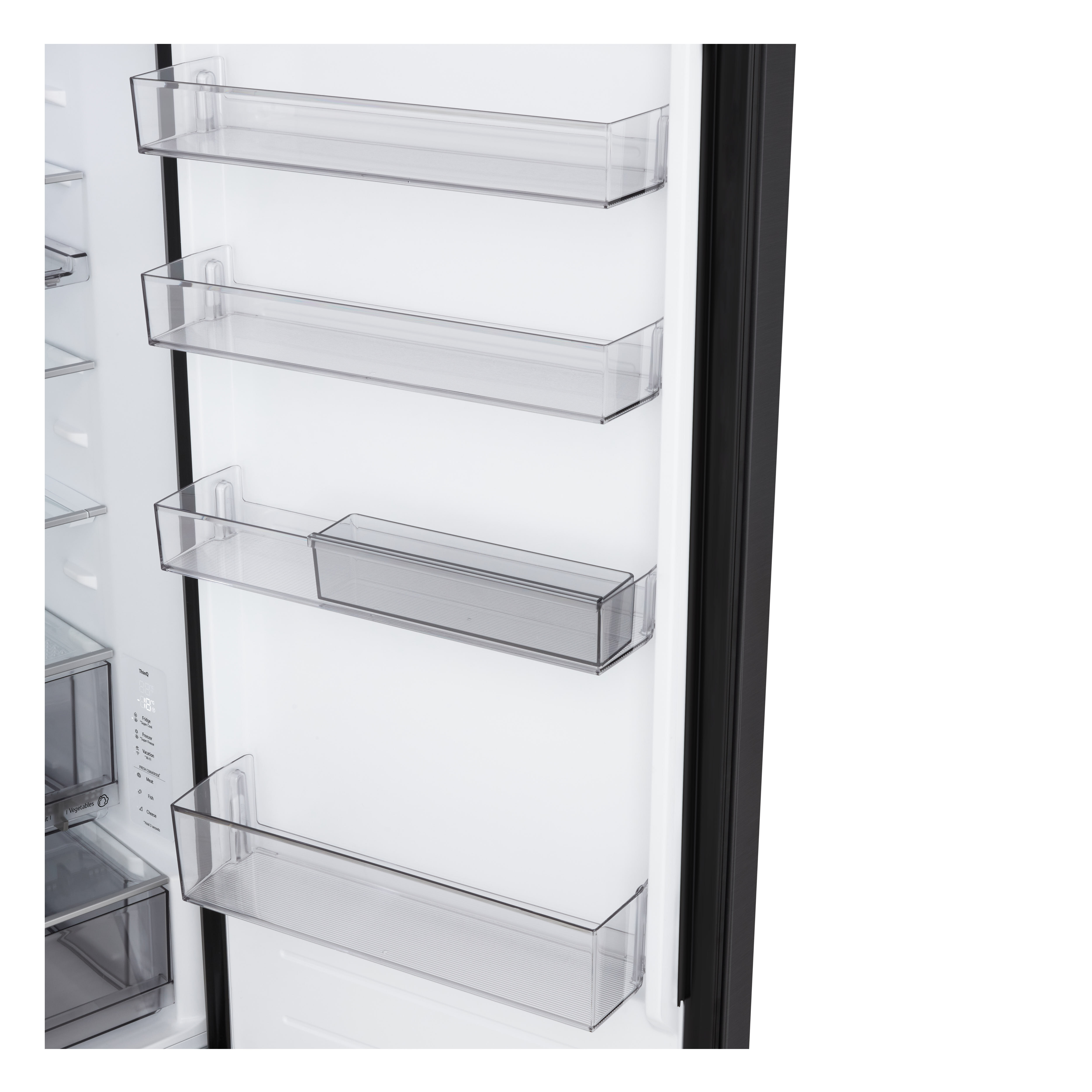 Stand-Kühl-/Gefrierkombination GBBS524AEV von LG LG hat mit der GBBS524AEV eine Stand-Kühl-/Gefrierkombination konzipiert, die überall hingestellt werden kann. Mit ihren 262 Litern Nutzinhalt im Kühlraum ist sie ideal für einen 2-Personen-Haushalt. Ihre Energieeffizienzklasse ist A (Spektrum [A bis G]). Sie gehört zur Klimaklasse T. Sie hat 29 dB und landet daher in der Geräuschemissionsklasse A. Die Größe ist entscheidend bei der Auswahl Das Gerät ist 59,7 cm breit, 203 cm hoch und 67,5 cm tief. Sein Gewicht beträgt 97 kg. Im Kühlteil gibt es 4 Sicherheitsglasplatten für Lebensmittel und eine Flaschenablage für Getränke jeglicher Art. Geliefert wird das Modell mit dem Türanschlag auf der rechten Seite. Falls das in Ihrer Küche nicht gut passt, können Sie Ihn problemlos nach links wechseln. Elegant schwarz ist die Farbe der GBBS524AEV. Unsere Kaufempfehlung Wie geschaffen ist die GBBS524AEV für Haushalte, die sich eine Stand-Kühl-/Gefrierkombination mit einem niedrigen Betriebsgeräusch wünschen.