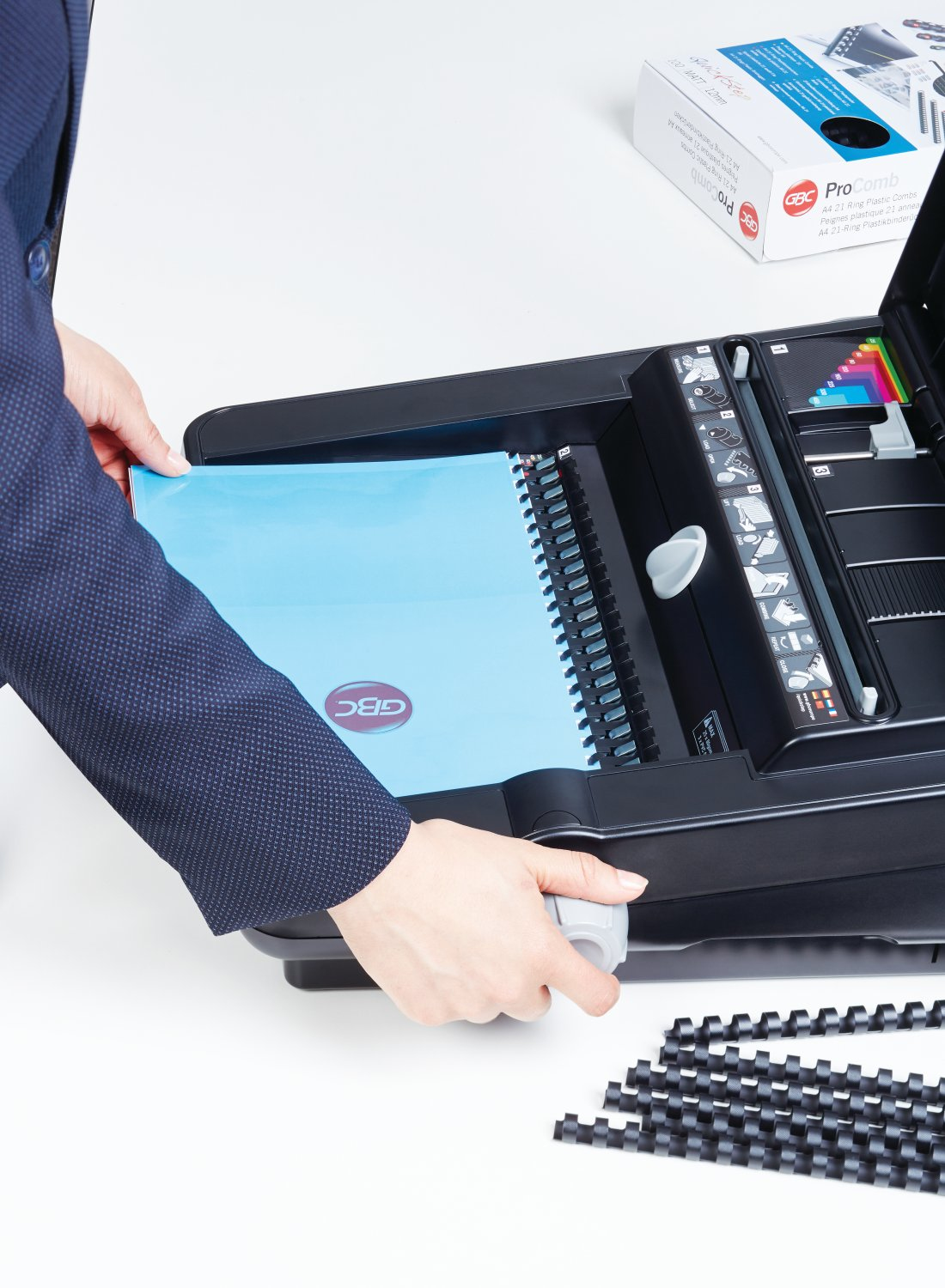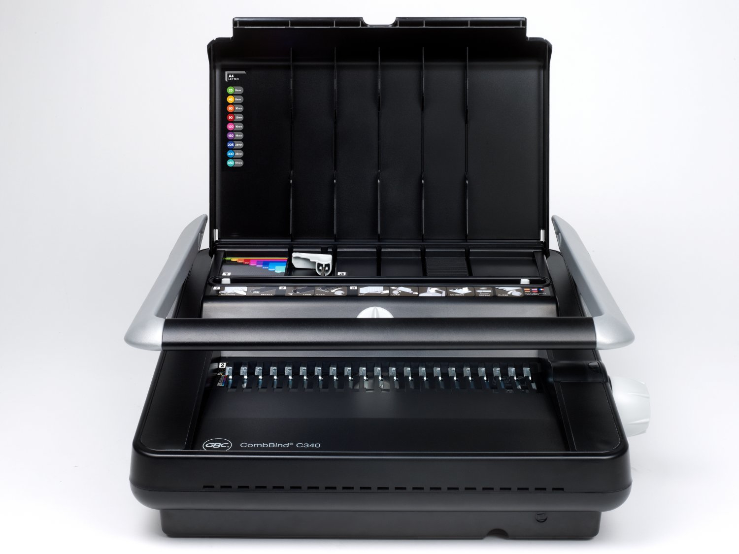 Für regelmäßige mittlere bis hohe Bindevolumen im Büro. ; Solides Gehäuse für lange Lebensdauer. ; Papierseparator teilt ihr Dokument in für die Maschine stanzfähigen Stapel. ; Automatischer Papieranschlag. ; Zentriesystem für perfekte Stanzung. ; Tragegriff.;