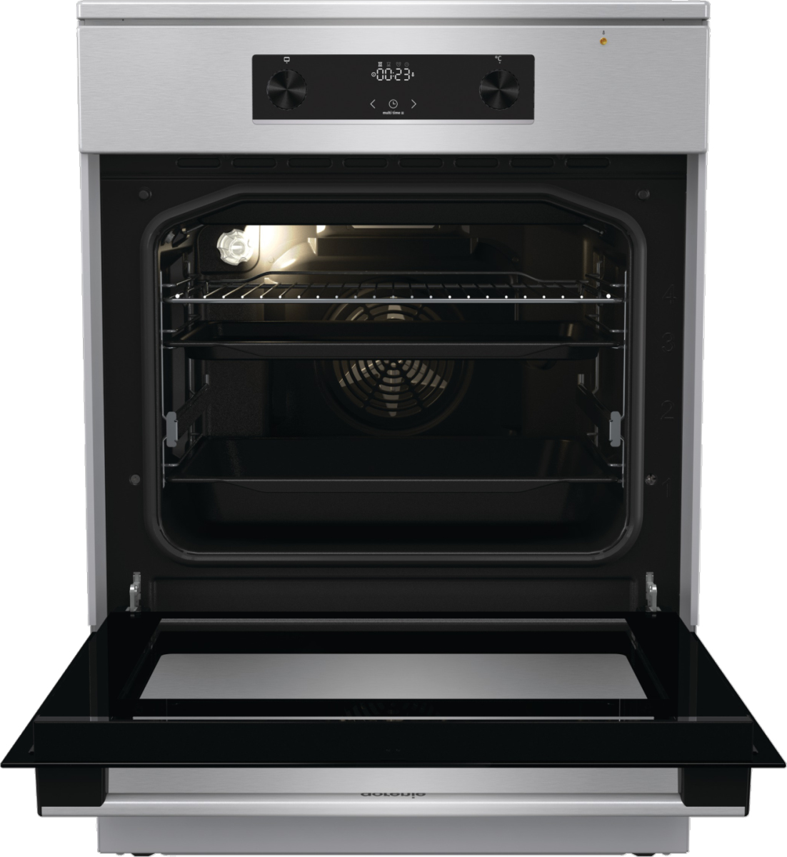 Gorenje Standherde bieten ein großzügiges Innenraumvolumen und sind mit extragroßen Backblechen ausgestattet. Innovative Lösungen sorgen für einen optimierten Energieverbrauch und gleichmäßiges Garen der Speisen, ganz gleich, wie viele es sind. Der Backofen-Innenraum wird über die gesamte Breite genutzt, und ein ausgeklügeltes Luftstromsystem stellt sicher, dass die Speisen auf allen Ebenen gleichmäßig gegart werden.