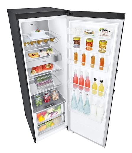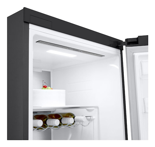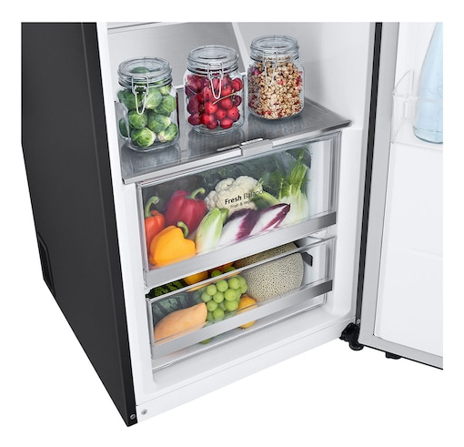 Inverter Linear Compressor® Kaum hörbar und trotzdem voller Power! Der Inverter Linear Compressor® reduziert dank innovativer Antriebstechnik den Energieverbrauch und bringt Leistung über viele Jahre. Zudem startet und stoppt er sanfter – das macht ihn im Vergleich zu konventionellen Kompressoren zusätzlich noch viel leiser. Multi-Airflow Umluftkühlung Die Multi-Airflow Umluftkühlung stellt sicher, dass die Temperatur im Kühlbereich schnell und gleichmäßig verteilt wird. Zudem wird die Entstehung von Kondenswasser im Kühlteil verhindert. Metal Fresh, die Metallrückwand des oberen Innenraums bei einigen Modellen, sorgt für Eleganz und ermöglicht mehr Hygiene. DoorCooling+® LGs einzigartiges DoorCooling+®: viel schnellere und gleichmäßigere Kühlung Durch die zusätzliche Luftöffnung oben im vorderen Bereich wird der komplette Kühlschrank schnell und gleichmäßig gekühlt. DoorCooling+® kühlt den Türbereich schneller als andere Kühlgeräte und lässt Ihre Lebensmittel sofort und lang anhaltend frisch bleiben. Getränke in der Tür werden atemberaubend schnell gekühlt. Express Cooling LGs Express Cooling Funktion ist schnell und effektiv. Metallapplikationen auf Schubladen und Ablagefächern Großes Wein- und Flaschenregal Das praktische und platzsparende herausnehmbare Weinregal kühlt bei optimaler Temperatur bis zu 5 Flaschen. Variables Ablagefach für XXL-Stauraum Glaszwischenboden einklappen und einschieben für mehr Platz Der variable Glaszwischenboden lässt sich in zwei Schritten einschieben und einklappen, sodass auch Gegenstände wie große Töpfe oder große Flaschen einfach Platz finden. Metal Touchdisplay Das randlos gestanzte Metal Touchdisplay in Verbindung mit der edlen Produktfarbe macht diese Kühl-/Gefrierkombination zu einem echten Hingucker. Zero Clearance Schubladenauszug bei 90° Türöffnung Die Tür lässt sich in einem 90˚-Winkel öffnen, so dass die Schubladen vollständig zugänglich sind. ThinQ® App-Kompatibilität (Android und iOS) Mit der LG ThinQ® App können Sie Ihren Kühlschrank über Ihr Smartphone steuern, auch wenn Sie nicht zu Hause sind. Kontrollieren Sie den Energieverbrauch, werden Sie bei Problemen direkt benachrichtigt oder steuern Sie z. B. die Kühlschranktemperatur oder die Schnellgefrierfunktion Ihres Kühlschranks ganz einfach von unterwegs. Smart Diagnosis® Bei einer Störung kann mittels einer Tastenkombination eine Tonfolge ausgelöst werden, anhand derer der Servicemitarbeiter das Problem via Telefon identifizieren kann. Einfache Probleme können sofort behoben werden, sodass überflüssige Kundendienstbesuche entfallen.
