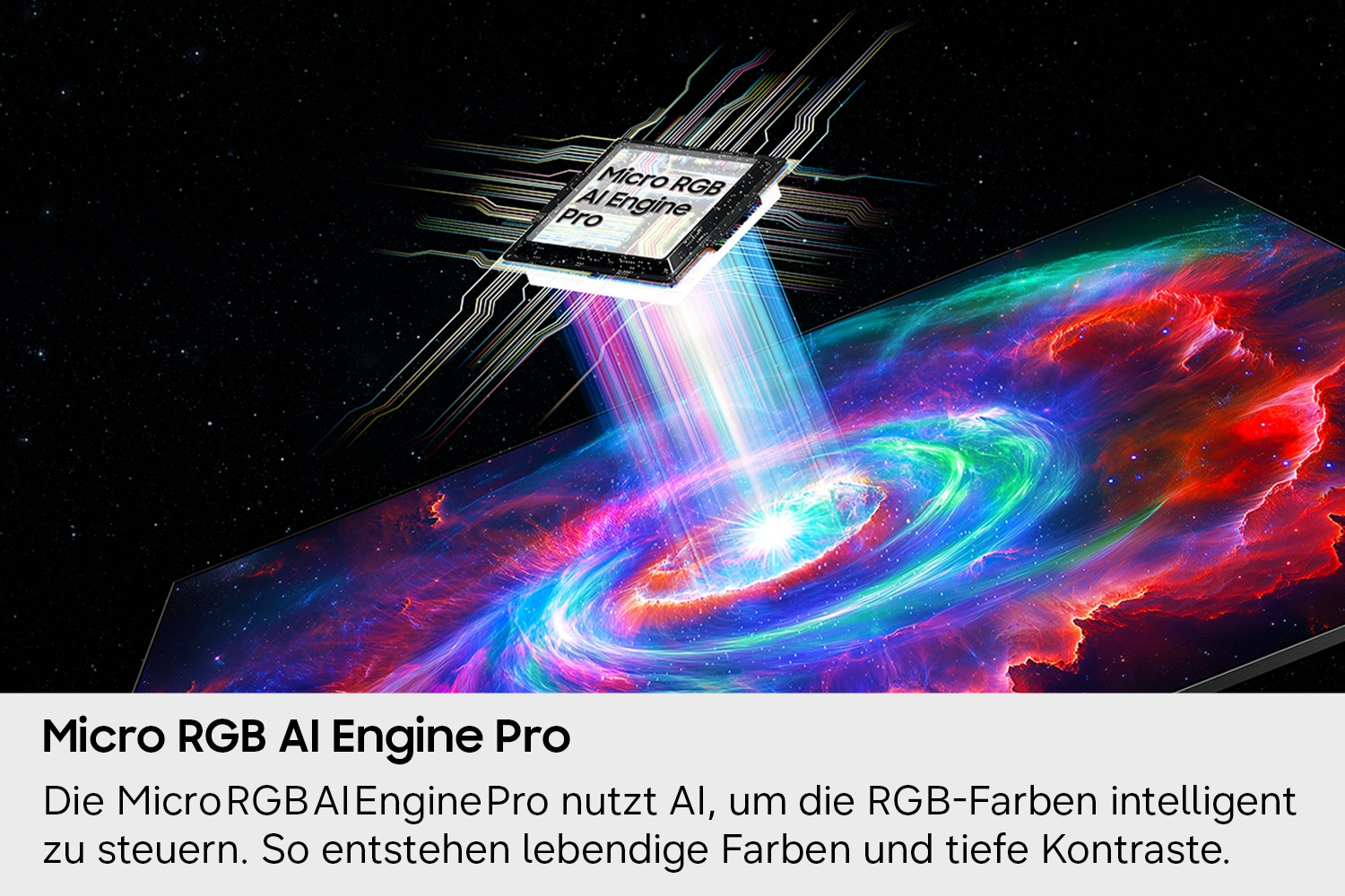 Ausgestattet mit einem Chip, der eine präzise AI-gesteuerte Kontrolle der RGB-Farben ermöglicht, erzeugt die Micro RGB AI Engine Pro lebendige Bilder in beeindruckender Qualität.