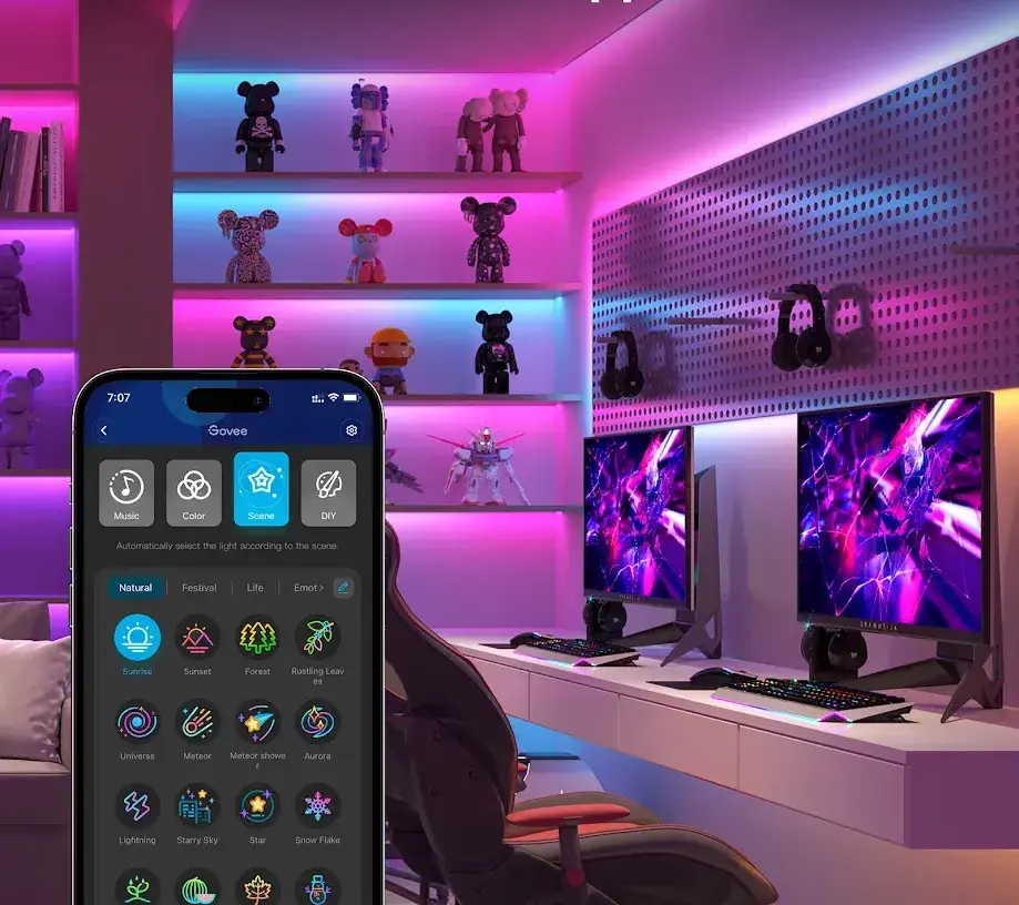 Die Vorteile des Produkts im Überblick: Flexibles Licht-Set mit App- und Sprachsteuerung Segmentierter RGBIC Lightstrip für dynamische Szenen Smart Light Bulb mit Tunable White und RGB-Farben Integrierter Musikmodus für dynamisches Licht Erweiterbar über App mit Gruppen- und Szenensteuerung Perfekter Einstieg in die Govee Lichtwelt