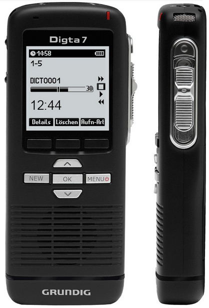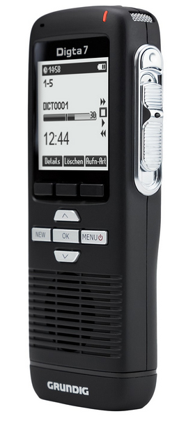 Das Digta 7 verfügt über einen neuartigen Schiebeschalter mit -Touch Pin-; Er erlaubt, die Schiebeschalterstellung beim Diktieren zu erfühlen, denn der -Touch Pin- tritt in der -Stopp--Stellung aus dem Schiebeschalter hervor; Außerdem ermöglicht dieser Schiebeschalter vier verschiedene Bedienvarianten; Durch einfaches Umstellen können Sie selbst Ihre bevorzugte Schiebeschalter-Variante für das Digta 7 wählen; Das ist besonders praktisch für Umsteiger oder auch Diktier-Einsteiger; Übrigens: Sie können das Digta 7 auch als PC-Mikrofon verwenden; Schließen es einfach mit einem USB-Kabel an Ihren Rechner an! Das transflektive, hintergrundbeleuchtete Display des Digta 7 stellt mit 160 x 160 Pixel und 16 Graustufen die Texte und Grafiken scharf, aber unaufdringlich dar; Helles Umgebungslicht, auch direkte Sonneneinstrahlung, verstärkt den Kontrast; Grau hinterlegte Felder gruppieren die angezeigten Informationen auf dem Digta 7 sinnvoll und übersichtlich; Aktive Einstellungen sind deutlich hervorgehoben; Im Display des Digta 7 zeigt Ihnen ein selbstskalierender Fortschrittsbalken die Länge des Diktats an; Auch mit Hilfe der Aufnahme-LED haben Sie immer einen guten Überblick - unabhängig davon, wie lang Ihr Diktat mit dem Digta 7 wird; Das Digta 7 verfügt über einen -Easy Mode-; Hierbei sind die Funktionen im Display auf das Wesentliche reduziert; Vor allem Diktanten, die vom analogen Diktieren aufs digitale Diktieren umsteigen, schätzen diese Funktion; Sie müssen sich nicht groß umstellen und profitieren von der einfachen Bedienung des Digta 7; Unterschiedliche Einstellungen und Diktatnamen von bis zu 20 Benutzern mit verschiedenen Namen und Passwörter auf einem Gerät! Dieses Diktiergerät wurde für den mobilen Einsatz optimiert; Das Gehäuse des Digta 7 zeichnet sich durch ein hochwertiges, ergonomisches Design aus; Es ist darüber hinaus extrem robust und schockabsorbierend; Inkl; Konfigurationssoftware Digta Configurator und DssMover (als kostenloser Download); Netz- und Akkubetrieb möglich, Netzgerät und Akku nicht im Lieferumfang; Inkl; PC-Software DigtaSoft One inkl; Lizenz für einen User (nur Windows).; ; Maße: 5,2 x 13 x 2,2 cm (B x H x T); Art des Displays: LCD, hintergrundbeluchtet; Display (Farbe) vorhanden: Nein; Bildschirmdiagonale des Displays: 4,65 cm (1,83-); max. Auflösung: 160 x 160 Pixel; Aufnahmedauer: 600 h; Typbezeichnung der Aufnahme: DSS, DSS Pro; interner Speicher vorhanden: Ja; Typbezeichnung der Speicherkarte: SD, SDHC; Kapazität des Speichers (unkomprimiert): 4 Gbyte; Anschlussart: USB 2.0, 2 x 3,5 mm Klinkenbuchse; Spracherkennung vorhanden: Nein; unterstützt Stereo: Ja; Stromversorgung: Batterie; Netzanschluss vorhanden: Ja; Sprachsteuerung vorhanden: Nein; Benutzergruppe möglich (Passwortschutz): Ja; Batterien im Lieferumfang enthalten: Ja; Art der Batterien/Akkus: AAA/Micro; Anzahl der Batterien/Akkus: 2 Batterien; Ausführung der Lieferzusammenstellung: inkl. Etui, Handschlaufe, USB-Kabel; Betriebsanleitung vorhanden: Ja; Gewicht: 125 g; Made in Germany: Ja; Farbe: schwarz;