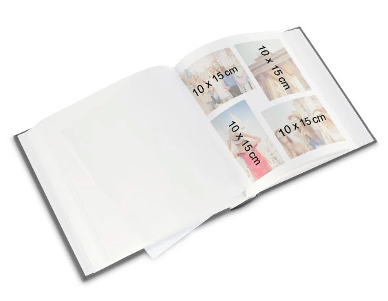 die Innenseiten sind voneinander durch weiß-transparente Pergaminschutzseiten getrennt: Das erlaubt den Überblick auf die folgende Seite und schützt Ihre Fotos und kreativ gestalteten Seiten vor Aneinanderhaften