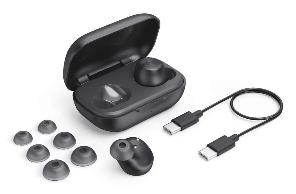 True-Wireless-Kopfhörer für kabellosen Musikgenuss und komfortables Telefonieren – leicht, bequem und intuitiv zu bedienen. Mit Bluetooth 5.3, Sprachsteuerung und Touch-Bedienung bieten sie moderne Funktionen im kompakten Design. Bis zu 4 Stunden Musik oder 3 Stunden Telefonie, aufladbar in der Ladebox – ideal für unterwegs. Features: True-Wireless für kabellosen Musikgenuss Bis zu 4 Stunden Musikwiedergabe Aufladbar in praktischer Ladebox Bluetooth 5.3 für stabile Verbindung Sprachsteuerung und Touch-Bedienung Technische Daten: Stromversorgung: Akku (Laden per Usb-C) Akkuladezeit: 2 Std. Musikzeit max.: 4 Std. Gesprächszeit max.: 3 Std. Standby max.: 150 Std. Ladehäufigkeit: 3x (in Ladebox aufladbar) Konnektivität: Bluetooth 5.3 Kopfhörerlautstärke: 92 dB +/- 3 dB Besonderheit: Sprachsteuerung (Apple Siri/Google Assistant), Finger-Touch Sensor Gewicht: 40 g Lieferumfang: Kopfhörer