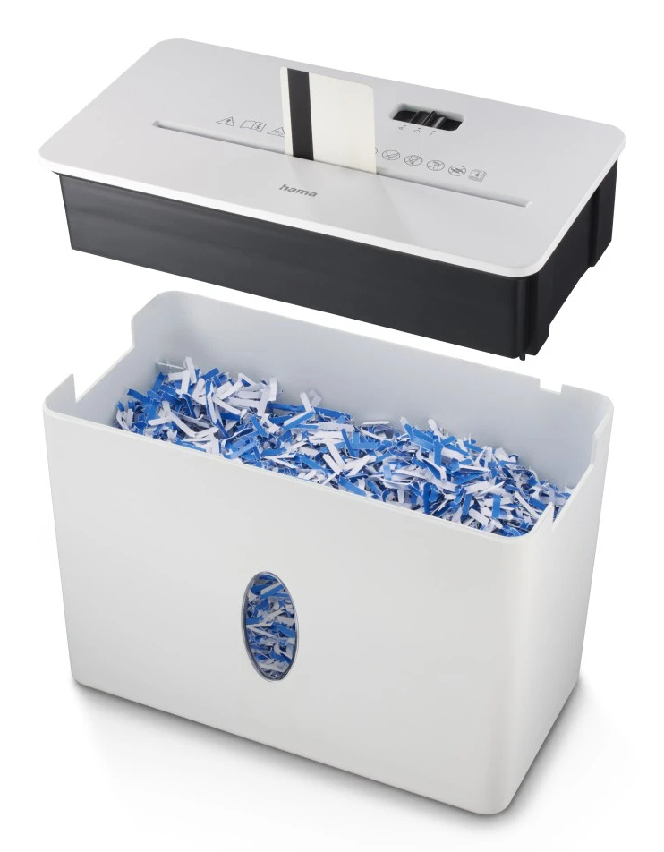 Der hama Aktenvernichter mit Partikelschnitt Safe X40-W schreddert zuverlässig Ihre DokumenteDer hama Aktenvernichter mit Partikelschnitt Safe X40-W ist der optimale Partner zur Vernichtung von vertraulichen Unterlagen oder Dokumenten bis zum Format DIN A4.Was bedeutet die Sicherheitsstufe P-4?Das Modell ist gemäß DIN 66399 für die Sicherheitsstufe P-4 zertifiziert und erfüllt damit die technischen Anforderungen zur datenschutzkonformen Vernichtung personenbezogener und vertraulicher Informationen im Unternehmensumfeld.Kompakter Auffangbehälter für leichte EntleerungDie Schneidleistung beträgt 4 Blatt, also diese Papiermenge können Sie bei einem Papiergewicht von 80 g/qm auf einmal zerkleinern. Für eine leichte Entsorgung der Überbleibsel sorgt der 8,0 l große Auffangbehälter. Er ist nicht besonders groß, weshalb das Gerät insgesamt auch kompakte und handliche Maße besitzt. Wenn Sie für den privaten Gebrauch oder das Homeoffice einen zuverlässigen Helfer suchen, dann sind Sie damit definitiv gut ausgestattet.Welche Vorteile hat der Partikelschnitt?Der Partikelschnitt sorgt dafür, dass die Dokumente nicht nur längs, sondern auch quer zerschnitten werden, was die Sicherheit verglichen mit einem bloßen Streifenschnitt stark verbessert. Die Partikel, die beim Schreddern entstehen, haben eine Größe von 4x 33 mm.Selbst Kreditkarten sind kein ProblemNicht nur Dokumente können vernichtet werden – auch Hartplastik wie Kreditkarten schreddert das scharfe Schneidwerk spielend. Die Schneidemesser bestehen aus Stahl. Das hochwertige und langlebige Material sorgt dafür, dass sie dauerhaft scharf bleiben.hama – Qualitätsanspruch trifft auf benutzerorientierte Entwicklunghama gehört zu den bekanntesten deutschen Marken für Elektronik- und Büro-Zubehör. Das Unternehmen überzeugt durch ein breites Sortiment, innovative Ideen und solide Qualität. hama entwickelt Produkte, die den Alltag erleichtern und moderne Technik mit praktischen Lösungen verbinden.Auf diese Highlights können Sie sich freuenIm Folgenden eine Übersicht weiterer Leistungsmerkmale: RücklauffunktionStart-/StoppautomatikÜberhitzungsschutzvernichtet Heftklammernvernichtet KreditkartenSichtfensterBestellen können Sie den hama Aktenvernichter mit Partikelschnitt Safe X40-W ganz bequem hier bei uns im Online-Shop.