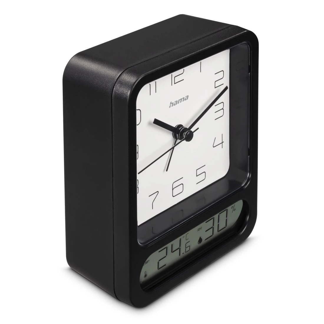 Für eine zuverlässige Zeitangabe bei Tag und Nacht – der hama Wecker Pag weiß schwarz Kunststoff 9,5 x 12,5 cmDieser hama Wecker Pag ist nicht nur ein praktischer Zeitwächter, sondern auch eine stilvolle Ergänzung für Ihr Zuhause, das Büro oder Ihr Homeoffice. Ganz einfach die gewünschte Alarmzeit einstellen – Sie können sich darauf verlassen, dass Sie von diesem Exemplar immer pünklich und zuverlässig geweckt bzw. erinnert werden.Modernes und funktionelles DesignSowohl das Erscheinungsbild als auch die verwendeten Materialien sind bei diesem Gegenstand entscheidend – er soll schließlich zu seiner Umgebung passen. Das Gehäuse ist eckig und besteht aus schwarzem Kunststoff. Die Zahlen auf weißem Grund sieht man sehr gut, sodass Sie die Uhrzeit auf den ersten Blick erfassen können. Die Zahlen auf dem Ziffernblatt erleichtern die Zeitablesung und gestalten das Design ansprechend.Details zum UhrwerkDas Produkt hat ein Quarzuhrwerk. Dadurch weist es eine sehr hohe Genauigkeit aus. Quarzkristalle weisen stabile Schwingungen auf und reagieren weniger auf äußere Einflüsse als mechanische Modelle, was diese Art der Zeitmessung wesentlich exakter machtKomfort geht vorDer hama Wecker Pag hat diese hilfreichen Eigenschaften: Hygrometer, Sekundenzeiger, Temperaturanzeige, Weckfunktion.Bleiben Sie auf dem Laufenden!Nutzen Sie den praktischen hama Wecker Pag weiß schwarz Kunststoff 9,5 x 12,5 cm für mehr Komfort und Effizienz im Alltag.
