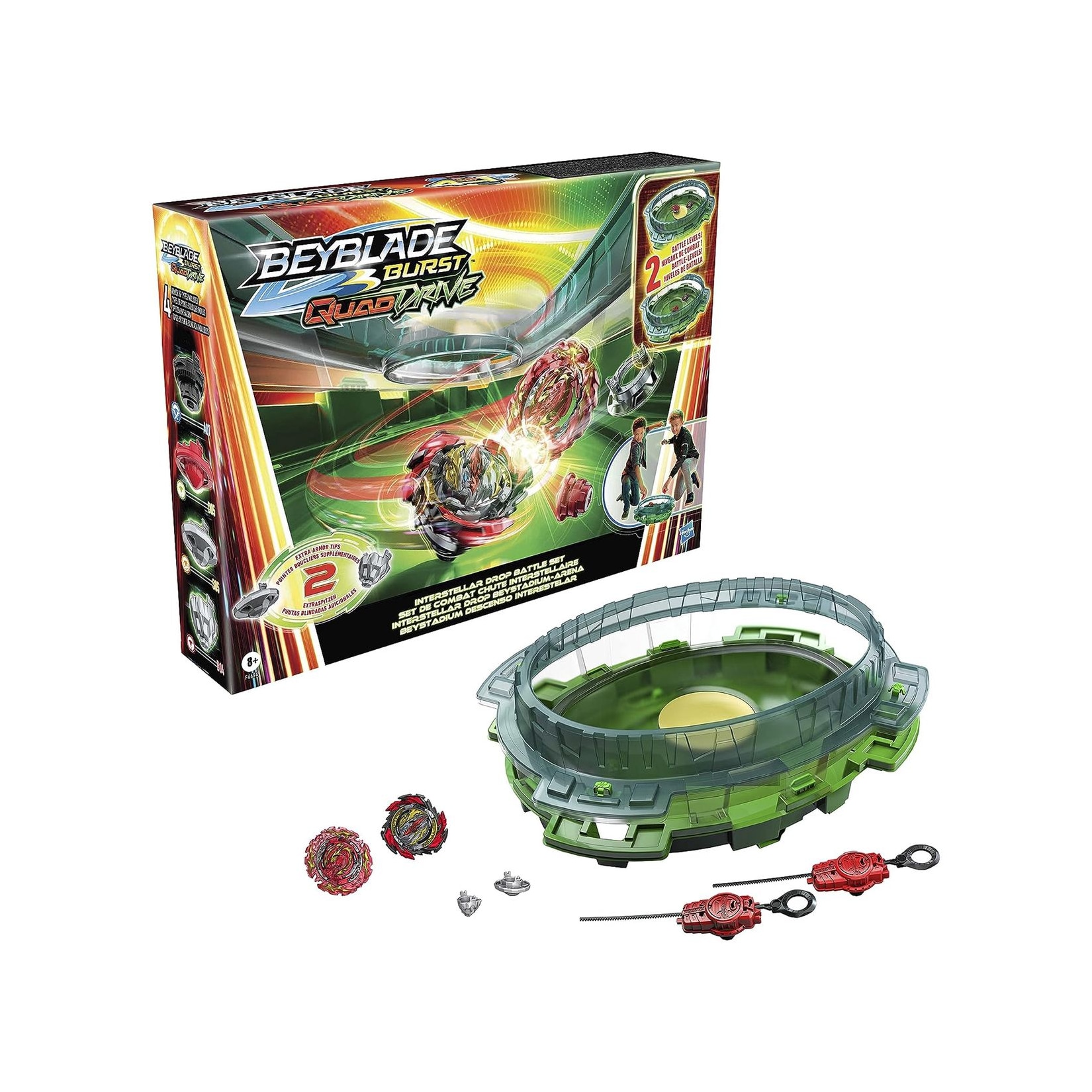 Wir präsentieren das Hasbro F4694EU40 Beyblade Burst QuadDrive Interstellar Drop Battle Set, das ultimative Erlebnis in Beyblade-Kämpfen. Erleben Sie die revolutionäre 4-in-1 Beyblade QuadDrive-Technologie, die Ihr Spielerlebnis auf die nächste Stufe hebt