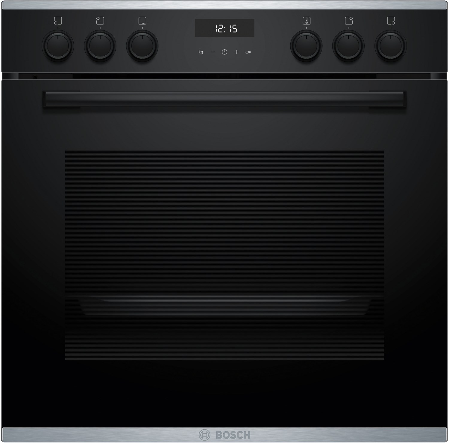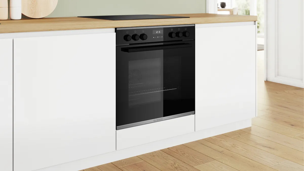 Bosch Elektroherd HEG237BB4 Der HEG237BB4 ist ein Elektroherd von Bosch. Für niedrige Energiekosten steht der Verbrauch von nur 0,94 kWh bei Ober-/Unterhitze und 0,69 kWh bei Heißluft/Umluft. Der Backofen fasst 71 Liter und ist somit mittelgroß. Potenzial für Kreativität Die Backofenprogramme 3D-Heißluft und Schnellvorheizfunktion ergänzen die konventionellen Beheizungsarten Ober-/Unterhitze und Unterhitze. Tolle Krusten entstehen unter Zuhilfenahme des Umluftgrills. Der italienische Klassiker wird auf der Pizzastufe unglaublich kross und lecker. Weitere Eigenschaften des Elektroherds Für mehr Sicherheit im Alltag sorgt die kühle Backofentür. Brand- oder Verbrennungsgefahren werden dadurch minimiert. Fettflecken und Speisereste haben aufgrund der glatten Innenwand keine Chance. Einbau-Elektro-Herd wird mit versenkbaren Schaltern bedient. Eine Größe von 59,4 cm x 54,8 cm x 59,5 cm sowie 32,8 kg Gewicht werden für den Elektroherd angegeben. Vervollständigt wird der Lieferumfang des HEG237BB4 durch 1 Kombi Back-/Grillrost, 1 Grillrost und 1 Universalpfanne. Unsere Kaufempfehlung Der HEG237BB4 überzeugt mit einer energieeffizienten Leistung.
