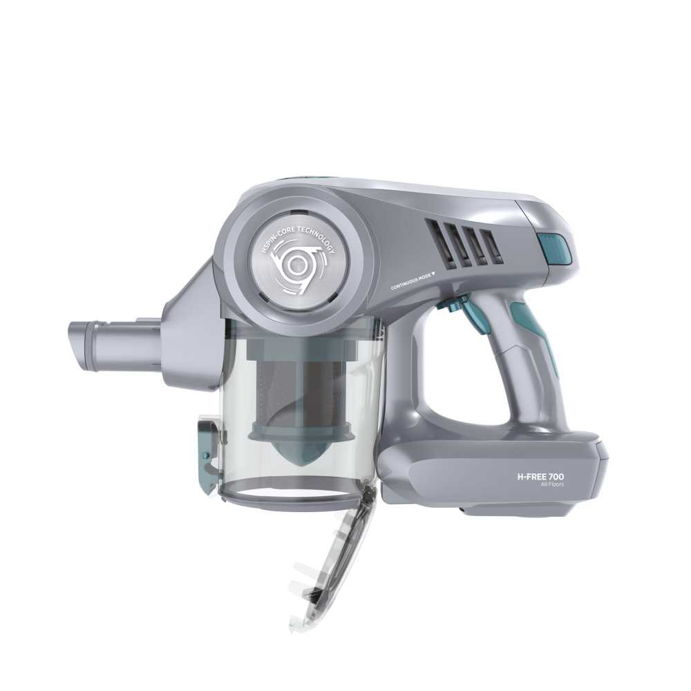 Handstaubsauger ohne Kabel, H-FREE 700, bietet eine nie zuvor dagewesene Sauberkeit und garantiert eine hohe Saugleistung auf allen Böden und Teppichen. Außerdem wurde das Design der Saugbürste überarbeitet, sodass diese 25 %* mehr Schmutz aufsaugt.