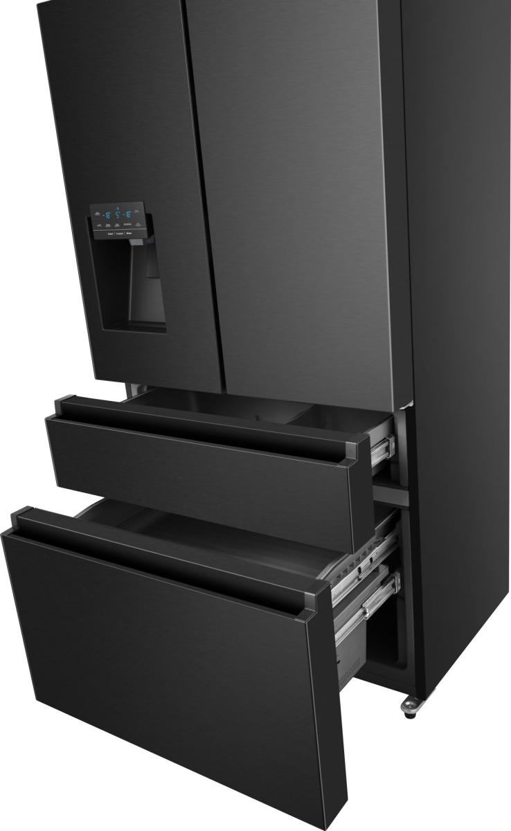 Er hat ein großes Fassungsvermögen, so dass im Kühl- und Gefrierschrank viel Platz für jede Art von Lebensmitteln vorhanden ist. Außerdem hat er zwei französische Türen, die sich weit öffnen lassen, so dass man alles auf einen Blick sehen kann.