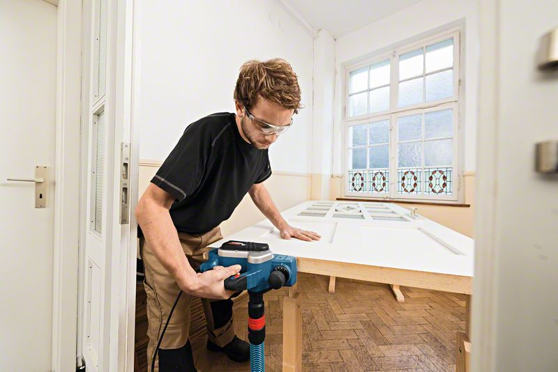 Hobel GHO 16 82 Hobel GHO 16-82. Starke Hobelleistung in der Einstiegsklasse. Kraftvoller 630-Watt-Motor, der kontinuierlich zuverlässige Leistung liefert. Stabile, flache Aluminiumfußplatte für eine lange Lebensdauer. Kompakte BauForm für eine komfürtable Handhabung auch an schwer zugänglichen Stellen. Im Lieferumfang ist folgendes Zubehör enthalten: Sechskantstiftschlüssel SW 2,5 (ET-Nr. 1 907 950 003), Stoffstaubbeutel, Parallelanschlag. - Breite: 19,2 cm, - Falztiefe einstellbar: 9 mm, - Gewicht: 4,22 kg, - Hobelbreite: 82 mm, - Höhe: 18,2 cm, - Länge: 37,1 cm, - Leerlaufdrehzahl: 18.000 min-1, - Nenneingangsleistung: 630 W, - Schwingungsemissionswert ah []: 8,0 m/s²