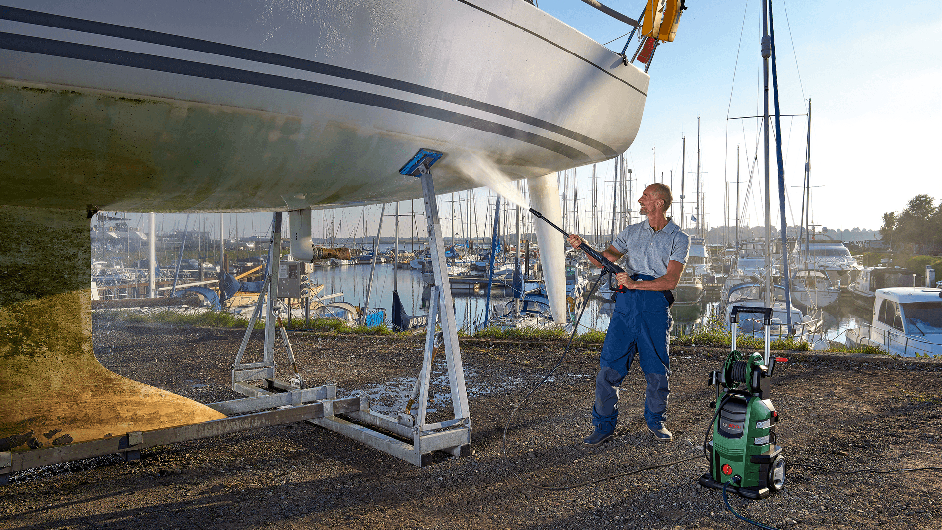 Hochdruckreiniger AdvancedAquatak 160 Hochdruckreiniger AdvancedAquatak 160. Beseitige hartnäckigen Schmutz durch Hochleistungsreinigung mit Vierkolbenpumpe. Vierkolbenpumpe liefert eine kraftvolle Reinigungsleistung von 160 bar. Auswahl an Düsen bietet vielseitige Optionen, perfekt für hartnäckigen Schmutz. Einfacher Aufbau durch Hochdruckschlauchrolle und Schnellkupplungen. 550-ml-Hochdruck-Reinigungsmitteldüse spart Zeit durch schnellen Waschmittelauftrag. Mehr Mobilität durch Teleskopstiel aus Metall und große Räder. Bosch Hochdruckpistole, Lanze, 8 m Hochdruckschlauch, Feststehende Flachstrahldüse, Rotor-Fan-Lanze, Stufenlose Fan-Lanze, Hochdruck-Reinigungsmitteldüse, 550 ml, Wasserfilter, Metall. - Breite: 43,5 cm, - Gewicht: 26,68 kg, - Höhe: 40 cm, - Kabellänge: 5 m, - Länge: 87,5 cm, - Max. Druck: 160 bar, - Max. Zulauftemperatur: 40 °C, - Schlauchlänge: 8 m