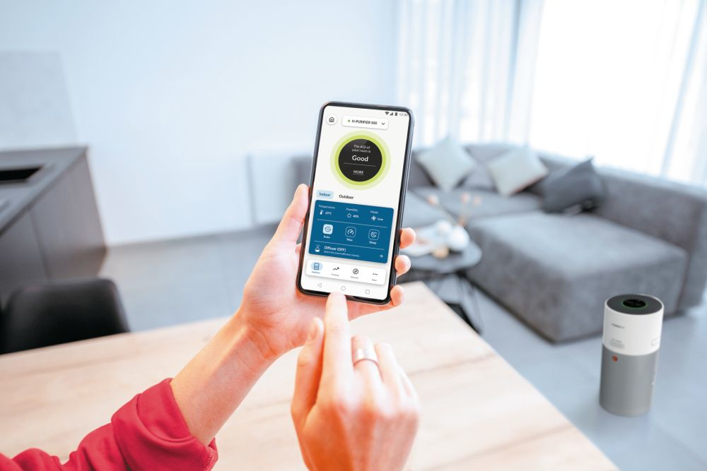 Verbessern Sie Ihr Luftreinigungs-Erlebnis mit der hOn App. Über die App erhalten Sie Zugang zu einer Welt voller nützlicher Funktionen: Fernsteuerung der Reinigungsmodi und -einstellungen, Aktivierung des Diffusors und Zeitplanungsprogramme. Mit der hOn App können Sie außerdem interne und externe Luftdaten sammeln und in Echtzeit Informationen über interne und externe Verschmutzung, Feuchtigkeit und Temperatur sowie Statistiken und Prognosen verfolgen, überwachen und kontrollieren.