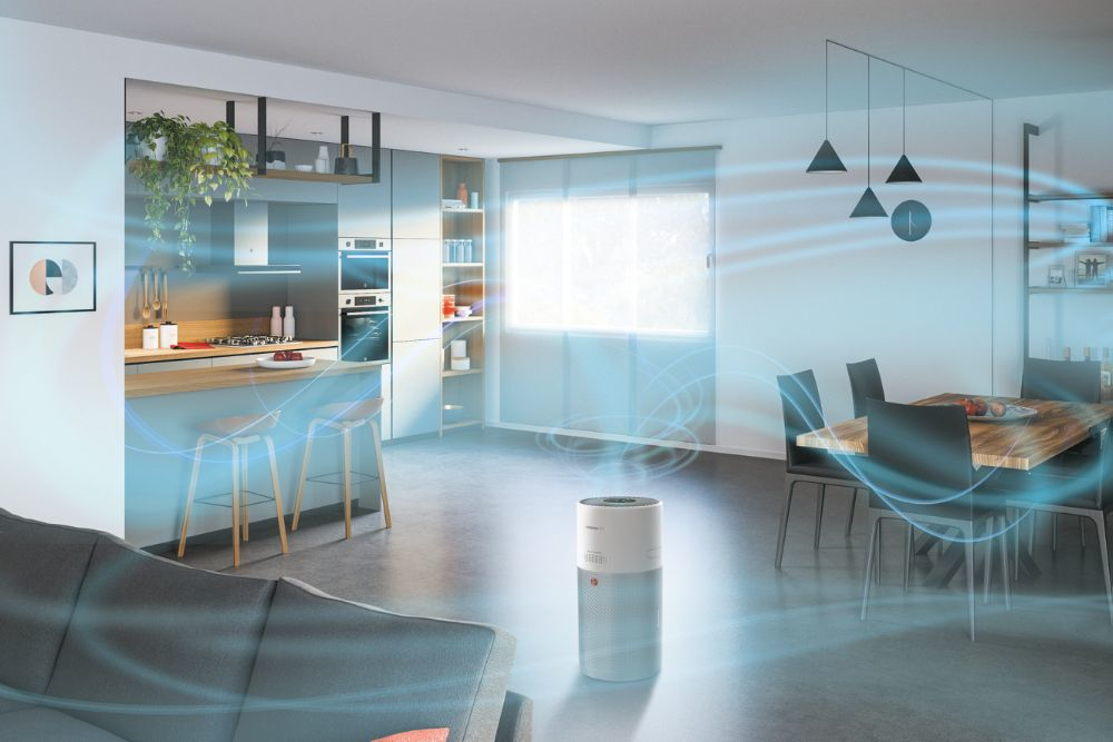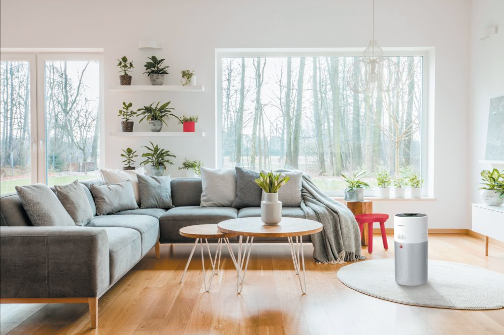 Dank des 360°-Luftstrom-Systems kann der H-PURIFIER 500 die gereinigte Luft auch in großen Räumen in alle Richtungen verteilen. Sobald Allergene und Schadstoffe erfasst sind, wird die gefilterte Luft zuerst zur Decke und dann im Raum verteilt, um jeden Punkt schnell und effizient zu erreichen.