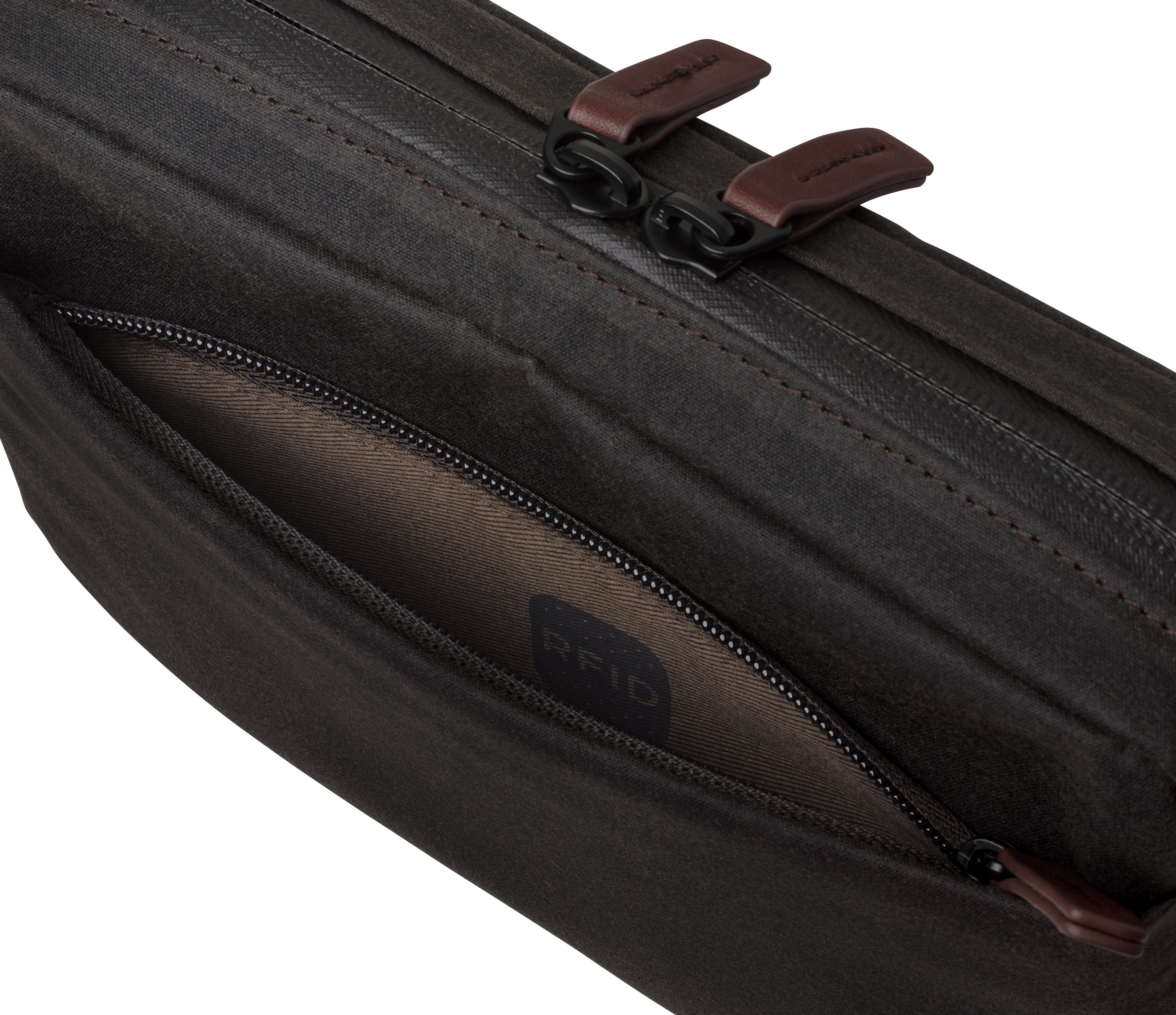 Mit dem eleganten Design mit wasserabweisendem Material und Lederakzenten ist die Hülle die ultimative Lösung für den sicheren Transport wichtiger Utensilien.