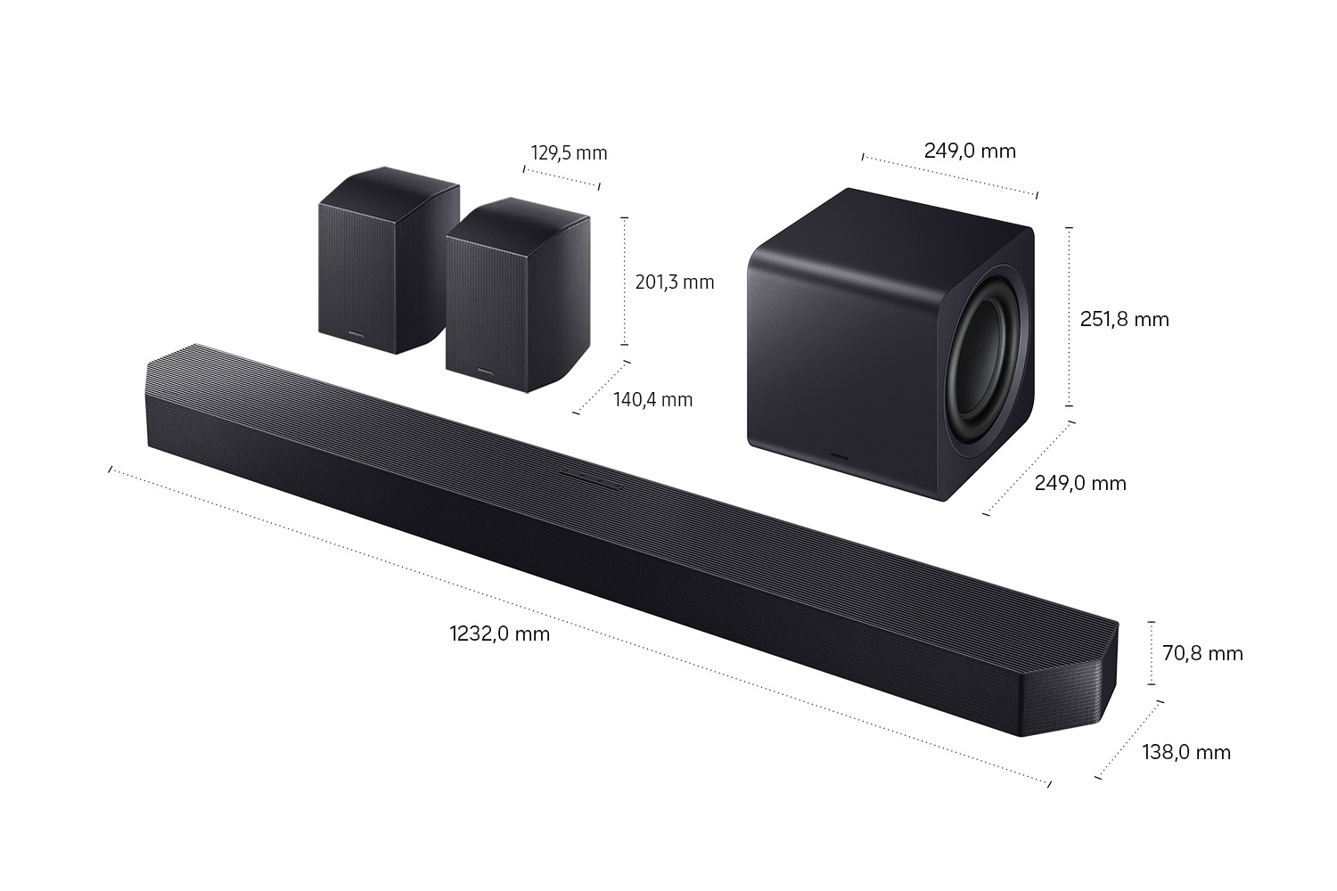 Genieße kraftvolle Bässe in einem kompakten Subwoofer, der mit dynamischer AI-Unterstützung störende Verzerrungen minimiert, sodass du einen Sound genießen kannst, der dem Original unglaublich nah kommt.