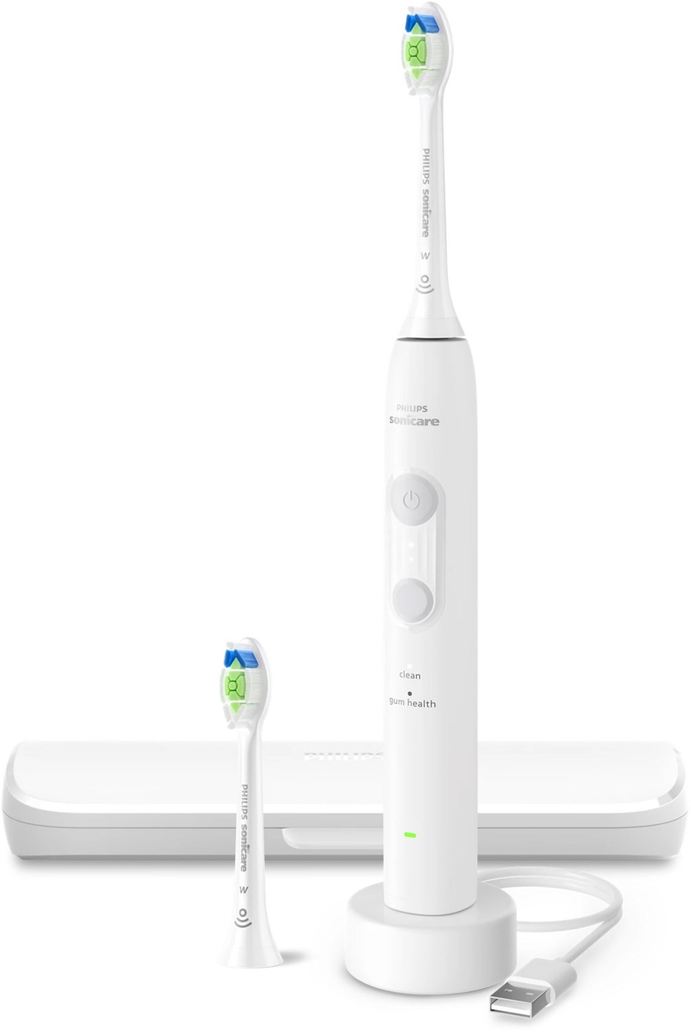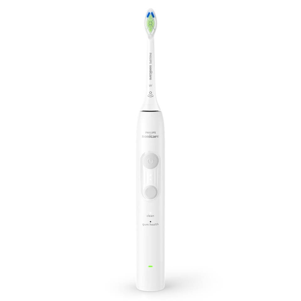 Entfernt sanft bis zu 5x mehr Plaque* Diese elektrische Zahnbürste wird mit unserem W Bürstenkopf geliefert. Die dicht angeordneten Borsten sorgen für bis zu 5x mehr Plaqueentfernung*, während sie Ihren gesamten Mund mit einer erfrischenden Reinigung versorgt. Sonicare Fluid Action Die Philips Sonicare Zahnbürsten reinigen und pflegen sanft und zugleich effektiv Ihre Zähne und Ihr Zahnfleisch mit 31.000 Bürstenkopfbewegungen. Die Sonicare Fluid Action unterstützt die Borsten bei der Reinigung, indem Flüssigkeit bis tief in die Zahnzwischenräume und entlang des Zahnfleischrands gespült wird. Schützen Sie Ihr Zahnfleisch mit unserem Drucksensor Es passiert schnell, dass man beim Zähneputzen zu starken Druck ausübt. Daher verfügt diese Philips Sonicare Zahnbürste über einen Drucksensor mit haptischem Feedback, der übermäßigen Druck erkennt. Wenn Sie beim Zähneputzen zu starken Druck ausüben, werden Sie durch sanfte Vibrationen daran erinnert, den Druck zu verringern, damit Ihr Zahnfleisch geschützt bleibt. Wählen Sie Ihr ideales Putzerlebnis Genießen Sie eine angenehme Reinigung mit 4 Putzmodi. Wählen Sie zwischen den Modi "Gentle" und "Clean" und zwei weiteren Intensitätsstufen. Egal, ob Sie etwas mehr Druckkraft benötigen oder einen bestimmten Fokus für Ihre Reinigung wünschen, Sie erhalten genau das gewünschte Erlebnis. Einfacher Wechsel zu elektrischem Zähneputzen Das Sonicare Easy-Start-Programm wurde für alle entwickelt, die zum ersten Mal mit einer elektrischen Zahnbürste putzen. Das Programm bietet Ihnen die Möglichkeit einer schrittweisen, sanften Erhöhung der Putzleistung bei den ersten 14 Reinigungen. Angeleitete Putzeinheiten Nutzen Sie die Reinigungszeiten von Sonicare. Alle 30 Sekunden fordert Sie der BrushPacer auf, einen neuen Bereich zu putzen. Nach 2 Minuten zeigt der SmartTimer an, dass Ihre Sitzung abgeschlossen ist. 21 Tage Akkulaufzeit Eine vollständige Ladung hält bis zu 21 Tage bei regelmäßigem Putzen. Sie erhalten einen ganz neuen Komfort bei Ihrer täglichen Putzroutine. * im Vergleich zu einer Handzahnbürste