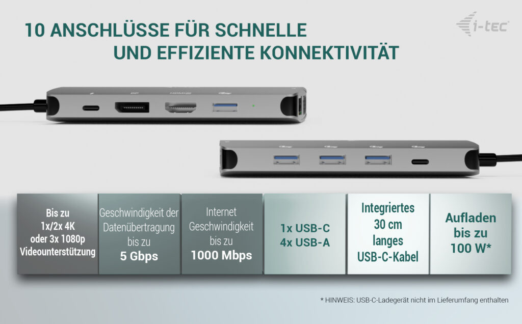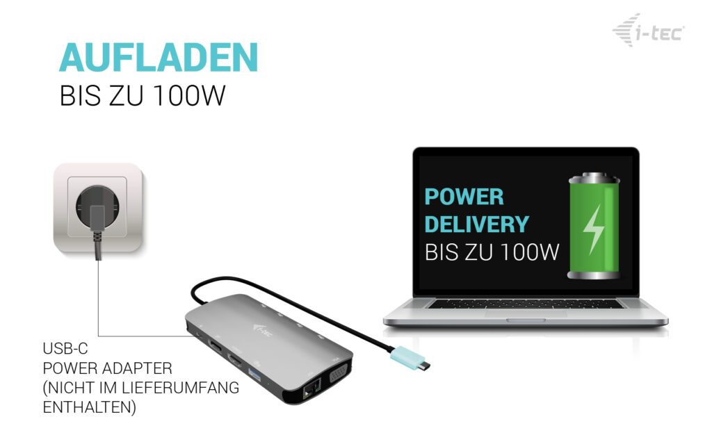 • Power Delivery bis zu 100 W – Laden Ihres Notebooks über USB-C