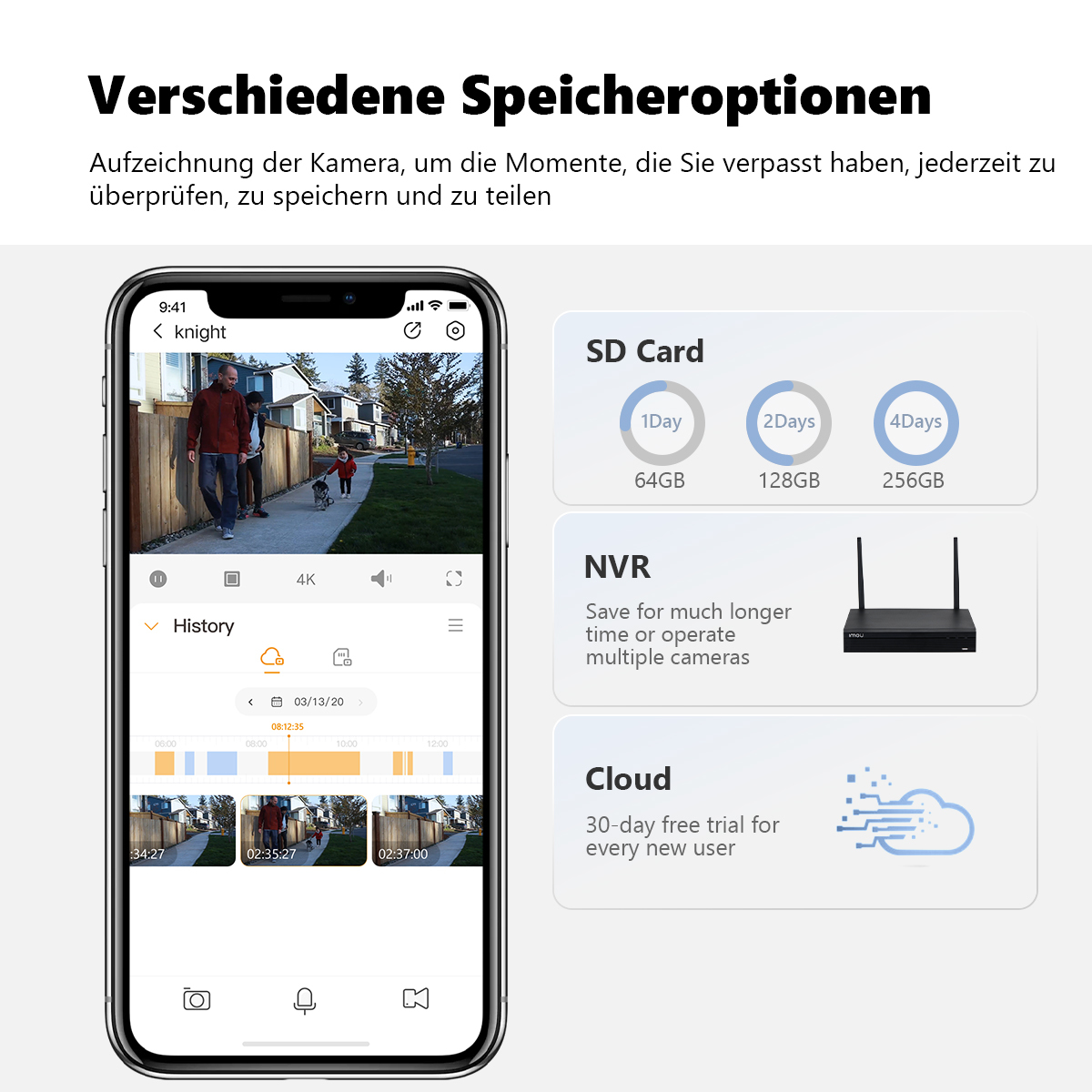 rnDie Imou Knight ist eine Kamera mit einer Videoauflösung von nicht weniger als 8 Megapixeln oder 4K UHD.rnMit dieser Überwachungskamera entgeht dem Auge kein Detail. Darüber hinaus verfügt diese Außenkamera über eine fortschrittliche KI-Erkennung. Damit können Personen, aber auch Fahrzeuge und Haustiere genau erkannt werden. Die Knight 4K-Kamera kann einen Erkennungsbereich und eine Erkennungslinie festlegen. Wenn etwas oder jemand diese Region betritt oder die Linie passiert, folgt sofort eine Benachrichtigung. Darüber hinaus verfügt diese Kamera über intelligente Nachtsicht in Farbe, Zwei-Wege-Gespräch und 2,4-GHz-/5-GHz-Dualband-WLAN. Dank der IP66-Zertifizierung trotzt der Knight jeder Wetterlage. Bilder können über den optionalen Cloud-Service oder lokal über eine microSD-Karte gespeichert werden.rnBildqualitätrnDas 8-MP-Objektiv (UHD 4K) bietet eine hervorragende Bildqualität zur Überwachung eines Vorgartens, Hinterhofs oder einer Garage. Die angewandte H.265-Bildkomprimierungstechnik