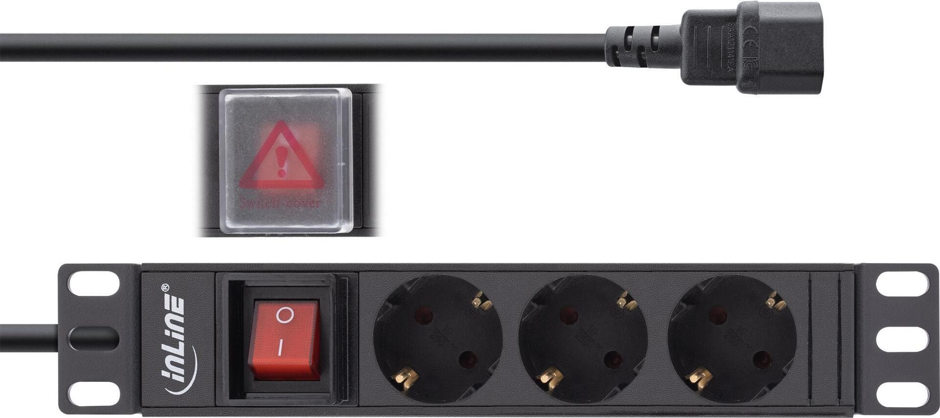 Steckdosenleiste mit 3 Steckdosen zum Einbau in den 10 Netzwerkschrank 3-fach Steckdosenleiste mit Schalter Steckdosen nach DIN 49440, um 45° gedreht Maximale Gesamtbelastung 2500 W Zuleitung: H05VV-F3G1,5mm², Länge 2m, mit geradem IEC-C14 Stecker z.B. zum Anschluss an eine USV Abmessungen Leiste: Breite 10 (254mm), Höhe: 1HE (45mm), Tiefe 45mm Aluminium-Leiste Farbe: schwarz RAL9004rnrn rnSteckdosenleiste mit 3 Steckdosen zum Einbau in den 10 Netzwerkschrankrnrn Hauptmerkmale rn rn Design rn PDU-Typen Geändert rn Rack-Kapazität 1U rn Typ Einphasig rn Gehäusematerial Aluminium rn Produktfarbe Schwarz rn Ein-/Ausschalter Ja rn rn Anschlüsse und Schnittstellen rn Anzahl der AC-Ausgänge 3 AC-Ausgänge rn Stecker C14-Koppler rn rn Merkmale rn Kabellänge 2 m rn rn Leistung rn Max. Leistung 2500 W rn rn Gewicht und Abmessungen rn Breite 254 mm rn Tiefe 45 mm rn Höhe 45 mm rn Größe (Imperial) 25,4 cm (10 Zoll) rn rn Verpackungsdaten