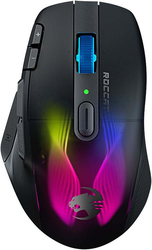 Die kabellose, anpassbare ROCCAT® Kone XP Air Gaming-Maus mit Ladestation kombiniert die beliebte ROCCAT Kone Form mit Stellar Wireless Technologie und Bluetooth® Konnektivität. Dank 29 programmierbarer Eingabemöglichkeiten bietet die Kone XP Air jede Menge Anpassungsoptionen in einem fantastischen, durchscheinenden Gehäuse voller LEDs für immersive 3D-Beleuchtung. ERGONOMISCHES DESIGN MIT MEHREREN MAUSTASTEN Die in jahrelanger Feinarbeit perfektionierte, ergonomische, unverwechselbare Kone Form gewährleistet Bedienkomfort auch bei langen Gaming-Sessions. Zehn Maustasten und das 4D -Mausrad ergeben insgesamt 29 programmierbare Eingabemöglichkeiten – verfügbar über die Easy-Shift[+]™ Duplikationstaste. SCHNELLLADESTATION Spiele die ganze Nacht mit mehr als 100 Stunden Akkulaufzeit in einer vollständigen Aufladung. Die stylishe Schnellladestation ermöglicht fünf Stunden Spielzeit nach nur 10 Minuten Aufladen. PRO GENAUIGKEIT & PRÄZISION Der optische ROCCAT Owl-Eye Sensor mit 19.000 DPI sowie die Titan Optical Switches gewährleisten eine extrem reaktionsschnelle Bedienung, die für einen echten Vorteil in jedem Spiel sorgt. AIMO BELEUCHTUNG Die durchscheinende Außenhülle und das Mausrad der Kone XP AIR erzeugen fünf RGB-Beleuchtungszonen, die für ein atemberaubendes Lichtspektakel sorgen. Die ROCCAT AIMO Beleuchtungstechnologie erzeugt ein dynamisches RGB-Lichtspektakel und kann sich auch mit anderen kompatiblen AIMO Produkten synchronisieren für ein immersives Beleuchtungserlebnis.