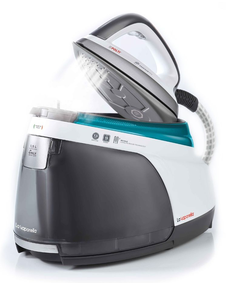 Die Vaporella XT110C ist eine zuverlässige, leistungsstarke und intelligente Dampfbügelstation. Holen Sie sich maximale Leistung und sparen Sie Zeit und Mühe beim täglichen Bügeln. Mit der richtigen Kombination aus Temperatur und Dampf durch die 6 Programme des Polti La Vaporella XT110C können Sie jedes Gewebe ermüdungsfrei perfekt bügeln. Lange Lebensdauer des Boilers ohne Wartung Hochdruckboiler mit NO CALC LONGLIFE-Technologie zur Vermeidung von Kalkschäden. Bügeln in alle Richtungen Innovative und multidirektionale, abgerundete Aluminiumsohle für perfekte Ergebnisse in einem einzigen Durchgang. Automatische Bügelprogramme Die Kombination aus Temperatur und Dampfleistung wird je nach gewähltem Programm automatisch voreingestellt. Universelles Programm Vergessen Sie das Einstellen von Dampf, Temperatur und Wartezeit. Wählen Sie Universal und bügeln Sie bis zur Perfektion. Bügeln leicht gemacht Die leuchtenden LED-Anzeigen am Bügeleisen zeigen Ihnen sofort an, in welcher Phase des Bügelvorgangs Sie sich befinden. Schalten Sie den Turbo ein Für ein schnelles und einfaches Bügeln selbst von schwersten Stoffen, die in einem einzigen Durchgang die schwierigsten Falten entfernen. Steam Pulse: intermittierender Dampf Der Dampf tritt automatisch in regelmäßigen Abständen aus, ohne dass die Taste gedrückt werden muss, wodurch Finger und Handgelenke geschont werden. Die Details machen den Unterschied Der abnehmbare Tank, die Bügelsperre und die abnehmbare Bügelmatte machen das Bügeln schnell und einfach.