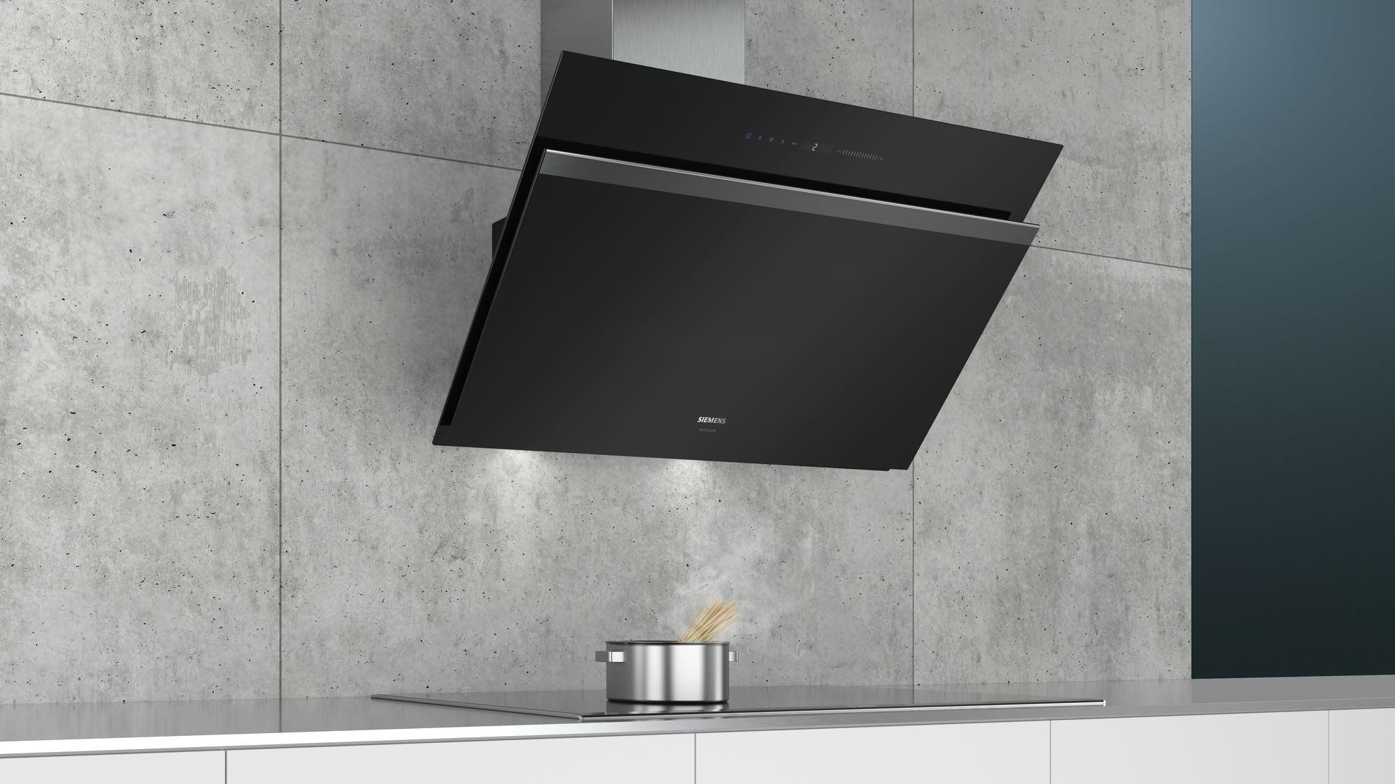 Bauform Wand-Esse 90 cm Schwarz Betriebsart und Leistung Wahlweise Abluft- oder Umluftbetrieb Für Umluftbetrieb wird ein Umluftset (Sonderzubehör) benötigt Bei Umluft kaminloser Betrieb möglich Max. Förderleistung: 980 m3/h Max. Lüfterleistung 540 m³/h bei Abluftbetrieb nach EN 61591 Lüfterleistung bei Abluftbetrieb nach EN 61591: max. Normalstufe 540 m³/h, Intensivstufe 980 m³/h Umluftleistung: max. Normalbetrieb 470 m³/h Intensivstufe 670 m³/h PowerBoost Stellung 2 Einsaugbereiche: Frontseite und Unterseite Komfort Luftgütesensor Metall-Fettfilter, spülmaschinengeeignet Sättigungsanzeige für Metallfett- und Aktivkohlefilter touchSlider Bedienung (3 Leistungsstufen + 2 Intensivstufen) mit LED-Anzeige, 2x7-Segment Intensivstufen mit automatischer Rückstellung Automatischer Gebläsenachlauf Doppelflutiges Hochleistungsgebläse Boost-Funktion Reinigungsfreundlicher Innenrahmen HomeConnect-fähig über WLAN cookConnect System (mit passendem Kochfeld) cookConnect System mit vollautomatischem Lüfterbetrieb Design blackSteel Design Schräg-Esse Randabsaugung Filterabdeckung aus Glas Glasscheibe: Klarglas schwarz bedruckt emotionLight Pro softLight Dimm-Funktion Arbeitsplatzbeleuchtung mit 2 x 3W LED-Modul Beleuchtungsstärke: 460 lux Farbtemperatur: 3500 K Umwelt und Sicherheit Energie-Effizienzklasse: A+* Durchschnittlicher Energieverbrauch: 32.2 kWh/Jahr* Lüfter-Effizienzklasse: A* Fettfilter-Effizienzklasse: B* Beleuchtungs-Effizienzklasse: A* Extrem geräuscharmer Betrieb durch spezielle Geräuschdämmung Geräusch min./max. Normalstufe: 41/55 dB Geräuschwerte nach EN 60704-3 und EN 60704-2-13 bei Abluftbetrieb: Max. Normalstufe: 55 dB(A) re 1 pW (41 dB(A) re 20 µPa Schalldruck) Intensivstufe: 68 dB(A) re 1 pW (54 dB(A) re 20 µPa Schalldruck) Geräuschwerte nach EN 60704-3 und EN 60704-2-13 max. Normalstufe Abluftbetrieb: 55 dB(A) re 1 pW (41 dB(A) re 20 µPa Schalldruck) Geräuschwerte bei Umluftbetrieb: max. Normalstufe: 69 dB(A) re 1 pW (56 dB(A) re 20 µPa Schalldruck) Intensivstufe: 78 dB(A) re 1 pW (64 dB(A) re 20 µPa Schalldruck) Energiesparender Betrieb mit iQdrive-Motortechnologie Maße Für Wandmontage über Kochstellen Abluftstutzen Ø 150 mm (Ø 120 mm beiliegend) Gerätemaße Abluft (HxBxT): 930-1200 x 890 x 499 mm Gerätemaße Umluft ohne Kamin (HxBxT): 370 x 890 x 499 mm Gerätemaße Umluft mit Kamin (HxBxT): 990-1260 x 890 x 499 mm Gerätemaße Umluft mit CleanAir Umluftmodul (HxBxT): 1120 x 890 x 499 mm - Montage auf Außenkanal 1190-1460 x 890 x 499 mm - Montage auf Innenkanal mit Rückstauklappe Gesamtanschlusswert: 270 W