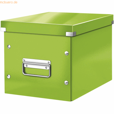 Leitz Archivbox Click & Store WOW Cube, M; Würfelform; Schneller, einfacher Aufbau mittels Druckknöpfen; Vorder- und Rückseite werden mit einer zusätzlichen Klappe in der Innenseite befestigt; Platz sparend zu verstauen; Mit vernickeltem Kantenschutz; Mit Tragegriffen; Mit Metall-Etikettenhalter; Mit großem Beschriftungsfeld; Stapelbar; Kapazität: 10 Liter / 13 kg; Material: stabile Hartpappe mit wasser- und schmutzabweisender PP-Folie laminiert; Format Außenmaß: 260 x 240 x 260 mm; Farbe: grün;