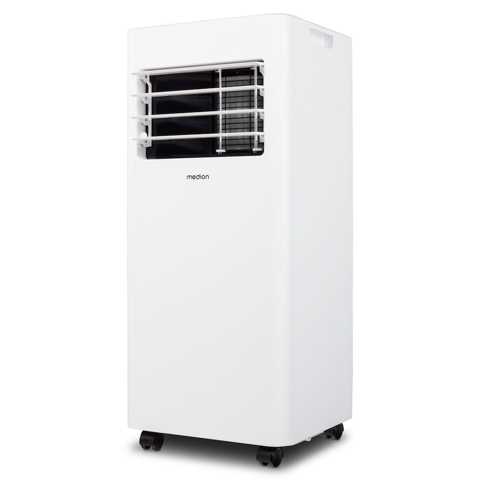 Behalte auch im Hochsommer einen kühlen Kopf mit der mobilen Klimaanlage MEDION E701. Das praktische Klimagerät reduziert mit satten 7.000 BTU Leistung zuverlässig die Temperatur Deiner Wohnräume. Als Kühlmittel wird dabei Propangas (R290) verwendet, sodass Deine neue Klimaanlage besonders effizient und energiesparend arbeitet. Diese Klimaanlage kühlt jedoch nicht nur die Raumtemperatur herunter, sondern kann Dein Zuhause auf Wunsch auch belüften und entfeuchten. Bis zu 0,8 Liter Feuchtigkeit können pro Stunde der Raumluft zuverlässig entzogen werden. Ein eingebauter Staubfilter säubert sie zusätzlich noch von lästigen Schmutzpartikeln. Durch die praktischen Rollen stellst Du das Klimagerät zudem einfach dorthin, wo Du es gerade brauchst. Das nützliche Multitalent reguliert mit Leichtigkeit die Wärme in Zimmern bis zu einer Größe von 25 Quadratmetern. Für eine ungestörte Nachtruhe sorgt der spezielle Schlafmodus, der die Lautstärke des Klimageräts deutlich reduziert. Abgerundet wird das Gesamtpaket durch eine Fernbedienung für die bequeme Steuerung und eine mitgeliefertes Fensterkit.