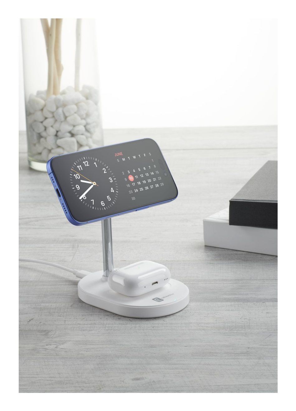 2-in-1-Design für maximale Praktikabilität: Laden Sie gleichzeitig Ihr Smartphone und kabellose Kopfhörer mit der multifunktionalen Basis mit magnetischem Pad und einem speziellen Bereich für Kopfhörer