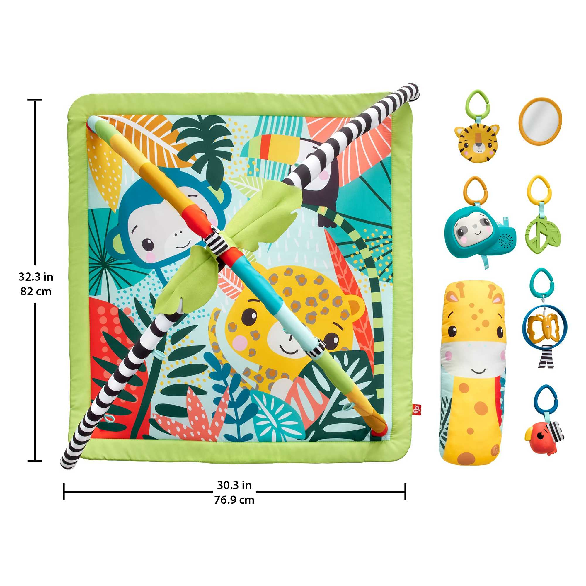 Die Fisher-Price Rainforest Spielmatte HJW08 wächst mit dem Baby mit und bietet abwechslungsreichen Spielspaß von den ersten Lebensmonaten an. Mit bunten Tieren, Musik, Lichtern und vielseitigen Funktionen unterstützt sie spielerisch die Entwicklung Ihres