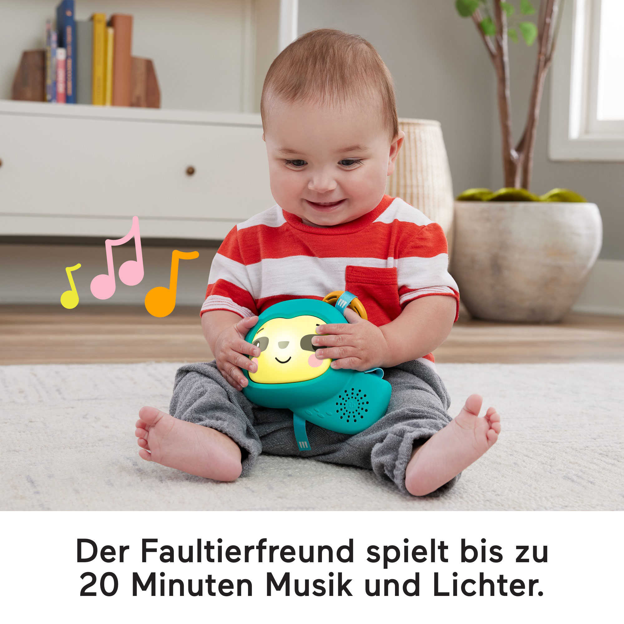 Ein interaktives Faultierspielzeug mit 2 Spielstufen, kurz oder lang, mit bis zu 20 Minuten Musik und Licht. Die Party kann durch das Drücken des Gesichts oder des Bewegungsschalters starten.