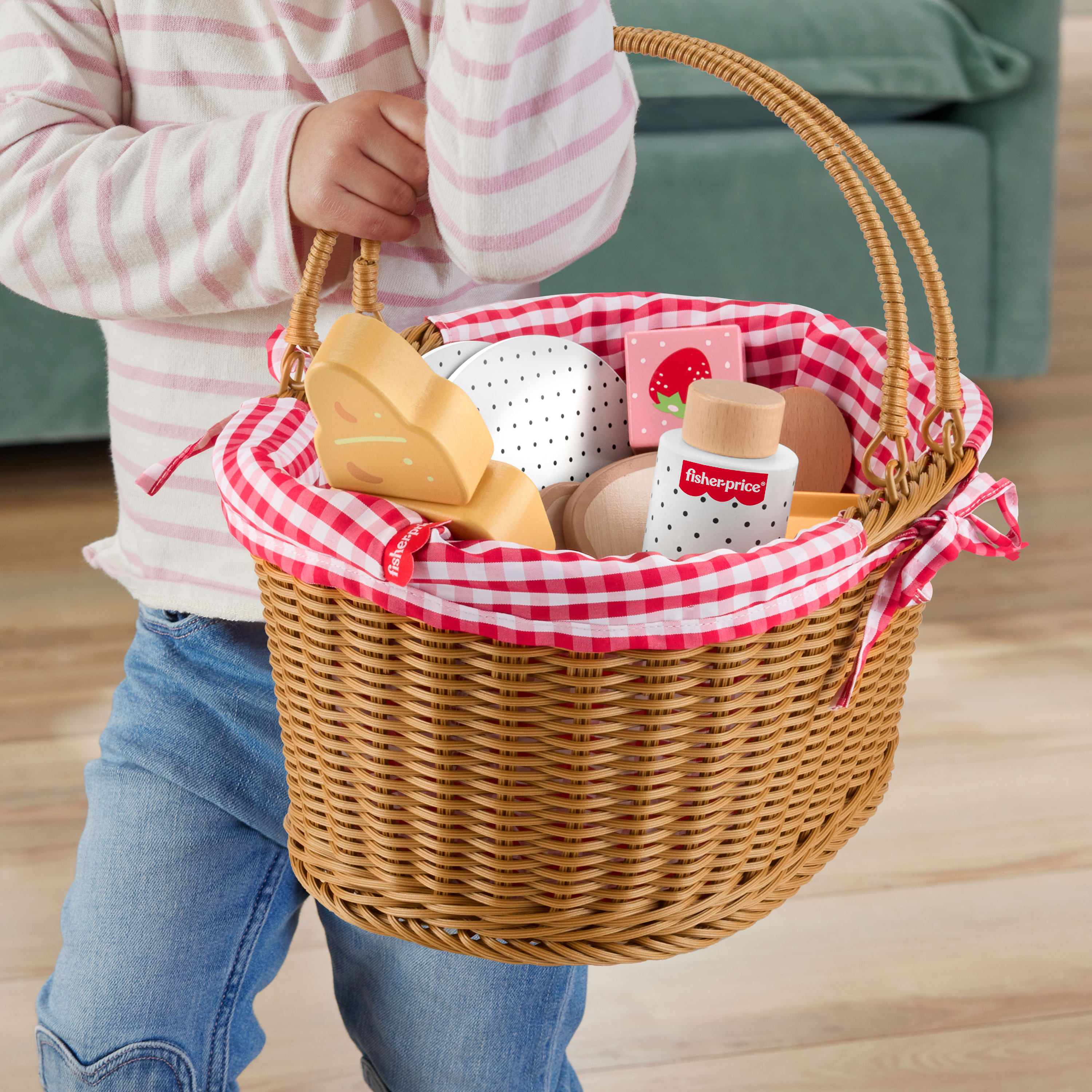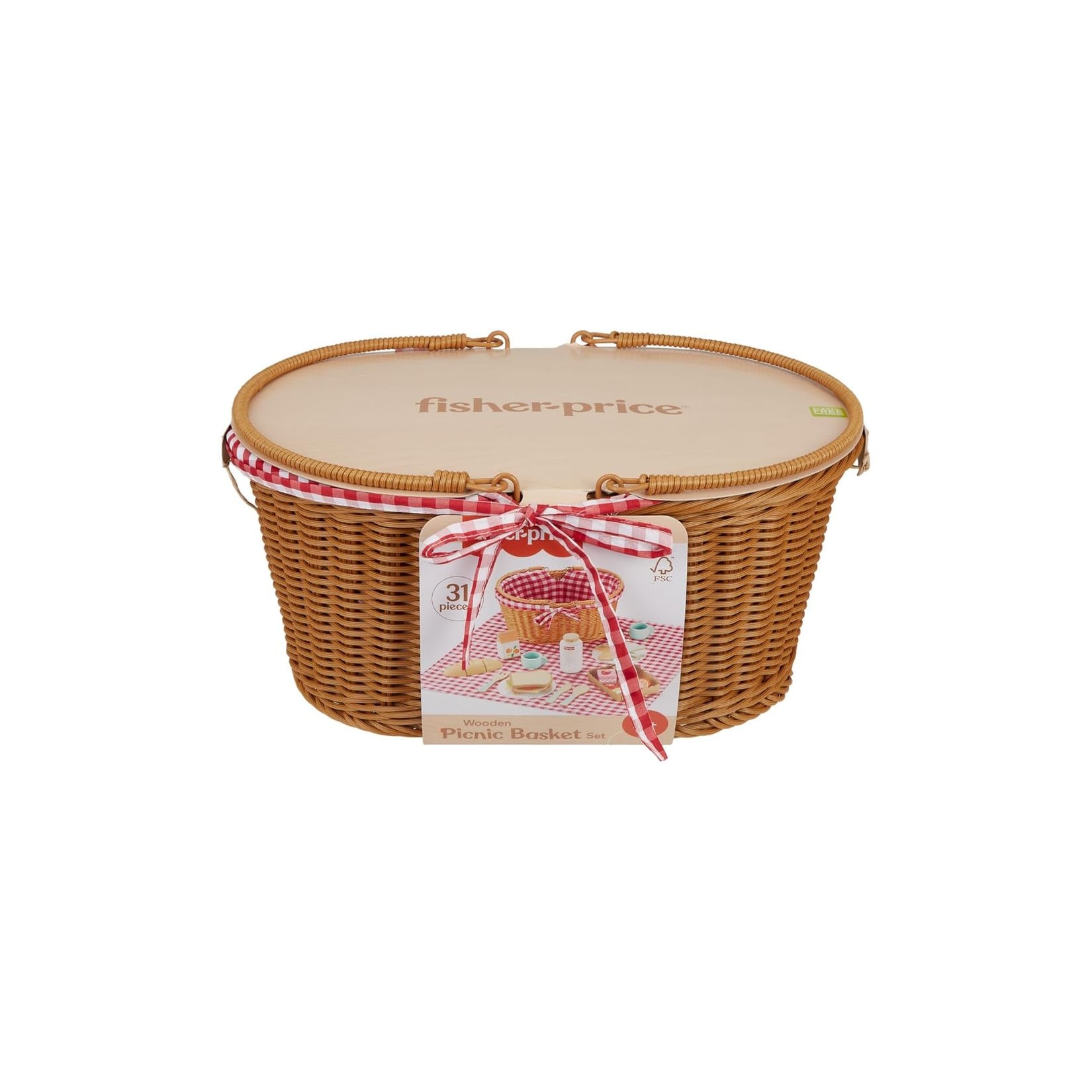 Das Fisher-Price Holz-Picknickset lädt Vorschulkinder zu kreativen Rollenspielen ein und bietet mit 31 Teilen eine umfassende Ausstattung für fantasievolle „Outdoor“-Abenteuer. Der robuste Picknickkorb dient als Transportbox für alle enthaltenen Elemente u