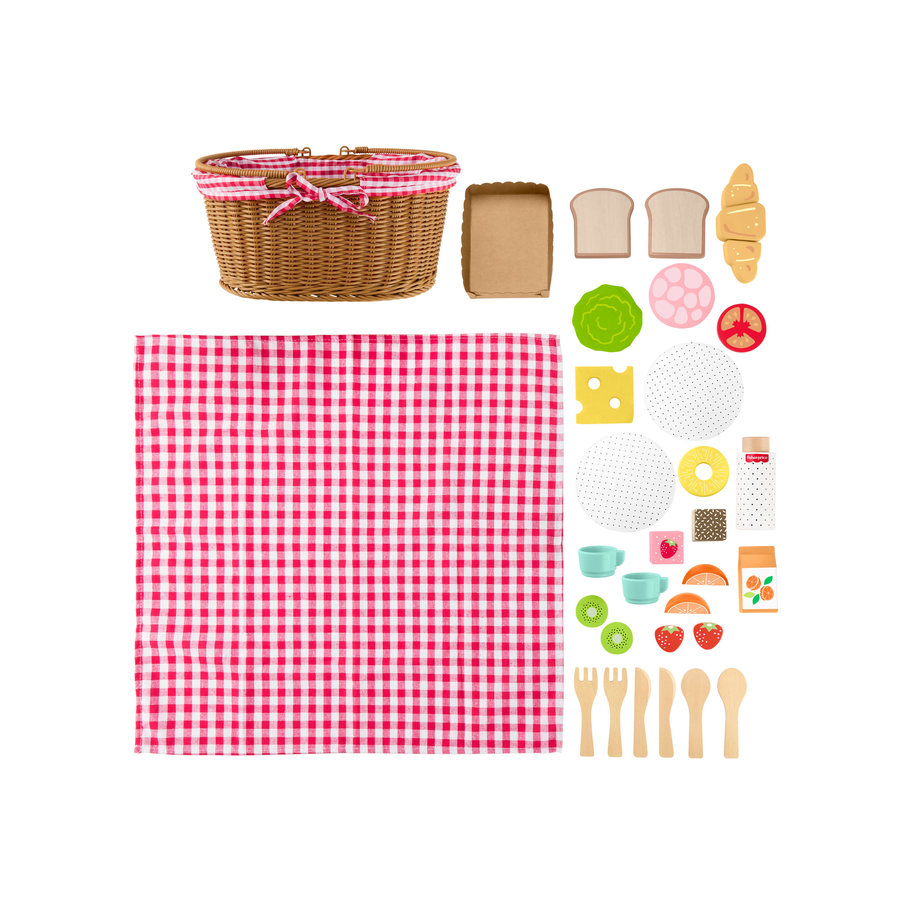 Mattel HXT81 - Fisher-Price - Picknickkorb-Set aus Holz mit Zubehör, 31 Teile