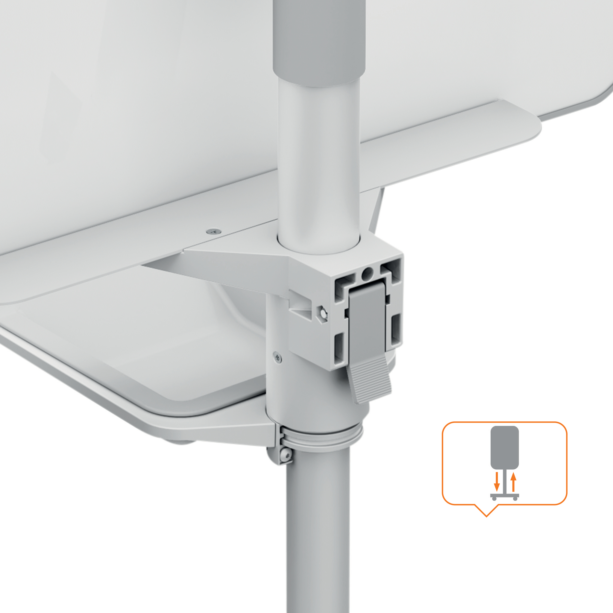 Das mobile Flipchart "Move & Meet" von Nobo ist ein praktisches und vielseitiges Arbeitswerkzeug für jedes Büro, das auf Zusammenarbeit setzt. Das abnehmbare und tragbare Whiteboard bietet eine perfekte Lösung für die gemeinsame Ideenentwicklung. Mit seinem modernen Design und abgerundeten Ecken findet es Platz in jedem Büro. Zudem ermöglicht es, es auf dem Schreibtisch oder auf dem Stativ im Hoch- oder Querformat zu montieren. Dadurch passt es sich flexibel an jede Arbeitsumgebung an. Dank der einfachen Höhenverstellung bis zu 1920 mm und den feststellbaren Rollen ist es zudem äußerst benutzerfreundlich. Das ausziehbare Whiteboard ermöglicht eine zusätzliche Anzeigefläche. So unterstützt es Sie effektiv in der kreativen Zusammenarbeit im Team. Im Lieferumfang enthalten sind ein Whiteboard-Marker und eine abnehmbare Stiftablage. Mit den Maßen 680 x 1040 mm und den Gesamtmaßen von B 714 x T 1200 x H 453 mm bietet das Flipchart ausreichend Platz für all Ihre Ideen. Wichtige Details: * Abnehmbares, tragbares und magnetisches Whiteboard: perfektes Hilfsmittel für jedes Büro, das Zusammenarbeit Groß schreibt * Kann auf dem Schreibtisch verwendet oder auf dem Stativ im Hoch- oder Querformat montiert werden * Feststellbare Rollen * Ausziehbar für eine zusätzliche Anzeigefläche * Inklusive Whiteboard-Marker und integrierter, abnehmbarer Stiftablage * Modernes Design mit abgerundeten Ecken * Höhenverstellung bis zu 1920 mm * Größe Whiteboard: 680 x 1040 mm * Maße: B 714 x T 1200 x H 453 mm * Farbe: weiß