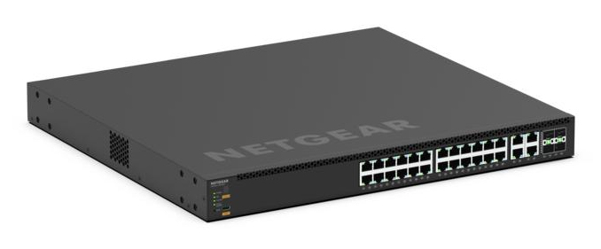 Netgear M4350-24M4X4V, 522W PoE++,24x2,5G, 4x10G, 4x25G, AV-Line, Internes 800-W-Netzteil mit, 522-W-PoE-Leistungsbudget. 2 Steckplätze für, modulare Netzteile (1 + 1 Redundanz und/oder EPS, teilen sich).Folgende Netzteile sind kompatibel:, APS600Wv3