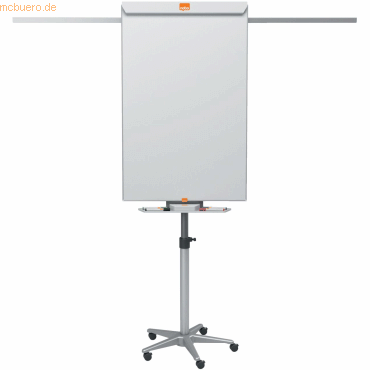 Nobo Flipchart Nano Clean Mobil, mit ausziehbaren Armen, magnetisch ; Ausziehbare Arme für die Präsentation zusätzlicher Seiten; Rundfuß mit 5 Rollen; Stufenlos höhenverstellbar von 130 bis 190 cm; Mit exklusiver Nano Clean-Beschichtung für hohe Löscheigenschaften; Resistent gegen Farbflecken, Stifteflecken, Kratzer und Dellen; Lieferung inklusive verstellbaren Haken für Blöcke, zuklappbare Stifteablage und einem Marker mit Wischer; Reinigung: trocken/feucht ; Oberfläche/Material: lackierter Stahl; Rahmen: Stahl; Format: 700 x 1900 x 745 mm; Farbe: weiß;