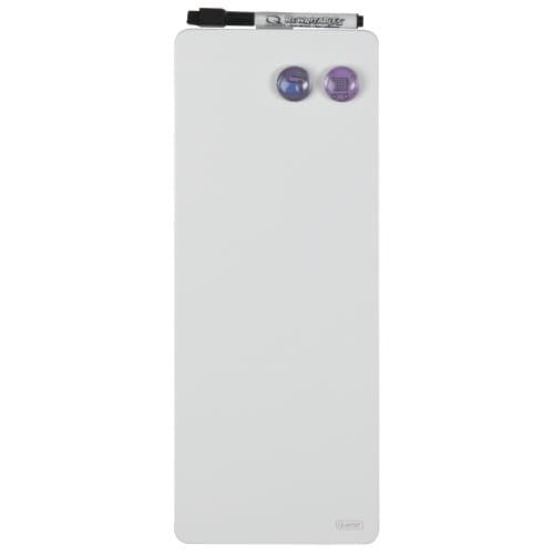 Idealer Platz für Ihre Notizen – die nobo Glas-Magnettafel Mini 14,0 x 36,5 cm weißUm nie mehr wichtige Termine zu vergessen, können Sie Ihre wichtigen Notizen an die nobo Glas-Magnettafel Mini 14,0 x 36,5 cm weiß heften. Das praktische Modell verfügt über die Fähigkeiten einer magnetischen Tafel und hat gleichzeitig die elegante Anmutung einer Glasscheibe. Ein edler und gleichzeitig praktischer Blickfang für Ihre Büroräumlichkeiten! Das Modell können Sie an die Wand montieren und dann loslegen!Notieren Sie Ihre Gedanken und IdeenDieses Modell ist beschriftbar. Allerdings ist darauf zu achten, dass zur Beschriftung abwischbare Stifte verwendet werden, um das Schreibfeld nicht zu beschädigen. Somit geht keine Idee oder Anmerkung verloren – Sie können alles direkt festhalten.Wie können Sie das Produkt nutzen?Die magnethaftende, beschreibbar und rahmenlose Oberfläche besteht aus Glas.Alles zur MontageDie Befestigung erfolgt über eine verdeckte Wandmontage. Die Montage erfolgt im Hochformat.Auch interessant zu wissenAuch diese Eigenschaften sind wissenswert:Wandmaße: 14,0 x 36,5 cm (BxH)Farbe: weißTafelstärke: 1,4 cmGewicht: 0,17 kgTrifft, wonach Sie suchen?Wenn Sie sich für die nobo Glas-Magnettafel Mini 14,0 x 36,5 cm weiß entscheiden, erhalten Sie 1x Marker, Magnete und adhäsiven Klebepads zur Lieferung mit dazu.