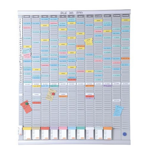 Nobo Jahresplaner Set für T-Karten; Für T-Karten Gr. 2; Mit 12 Spalten und 54 Fächern; Für die Organisation von Projekten für ein ganzes Jahr; 12 Kartenträger mit je 54 Schlitzen für T-Karten Gr. 2 und 1 Indexspalte mit 54 Schlitzen für T-Karten Gr. 1; Kapazität: 702 T-Karten; Lieferung inklusive Wandbefestigungsset, 2 Aluminiumprofilen mit Blanko Titelstreifen, 10 x 100 farbig sortierte T-Karten Gr. 2, 1 x 100 weiße T-Karten Gr. 1, 12 magnetische Etikettenhalter, vorgedruckte Etiketten Januar bis Dezember; Material: Aluminium; Format: 800 x 960 mm;