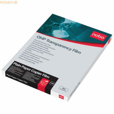 Nobo Overheadprojektor-Folie; Für Inkjetdrucker; Mit Spezialbeschichtung, schnelltrocknend; Mit abziehbarem Sensorstreifen an der Kopfseite; Material: PP-Folie, 120 micron; Format: für DIN A4; Inhalt: 50 Blatt; Farbe: glasklar ;