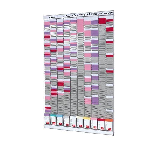 Nobo Projektplaner Set für T-Karten; Für T-Karten Gr. 2; Mit 10 Spalten und 54 Fächern; Für die Organisation von Projekten; 10 Kartenträger mit je 54 Schlitzen für T-Karten Gr. 2; 1; Kapazität: 540 T-Karten; Lieferung inklusive Wandbefestigungsset, 2 Aluminiumprofilen mit 4 farbigen Titelstreifen, 10 x 100 farbig sortierte T-Karten Gr. 2; Material: Aluminium; Format: 645 x 960 mm;
