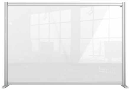 Nobo Schreibtisch-Trennwand Premium Plus; Freistehende Schreibtisch-Trennwand für eine effektive soziale Distanzierungslösung für jede Umgebung; Sie ermöglicht gleichzeitig eine klare und sichere Kommunikation; Dieser Spuck- und Niesschutz kann einzeln oder mit Erweiterungen zu einer individuellen Hygienewand zusammengestellt werden; Die Gesamthöhe von Trennwand und Schreibtisch beträgt 1,8 m und bietet somit eine gute Lösung als Hygieneschutz im Sitzen; Das transparente Design ermöglicht eine uneingeschränkte und natürliche Lichtdurchlässigkeit; Die Trennwand verfügt über einen eloxierten Rahmen und einen kleinen Spalt von 20 mm als Kabelzugang an der Unterseite; Schnelle und einfache Ein-Mann-Montage; Leicht zu reinigen und desinfizieren mit sauberem, weichem Mikrofasertuch, Wasser und Seife; Material: Acryl; Rahmen: eloxiertes Aluminium; Gewicht: 6,7 kg; Format: 1400 x 1000 x 400 mm; Farbe: klar;
