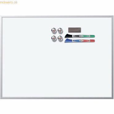 Nobo Tafel, magnetisch; Gute Löscheigenschaften; Gute Widerstandsfähigkeit gegen Farbflecken, Stifteflecken, Kratzer und Dellen; Lieferung inklusive Montageset, einem Marker mit Wischer und 2 Magneten; Reinigung: trocken/feucht; Oberfläche/Material: lackierter Stahl; Rahmen: Aluminium, silber; Format: 585 x 430 mm; Farbe: weiß;