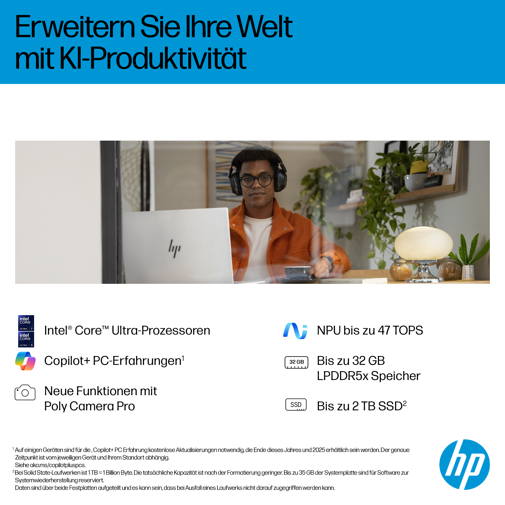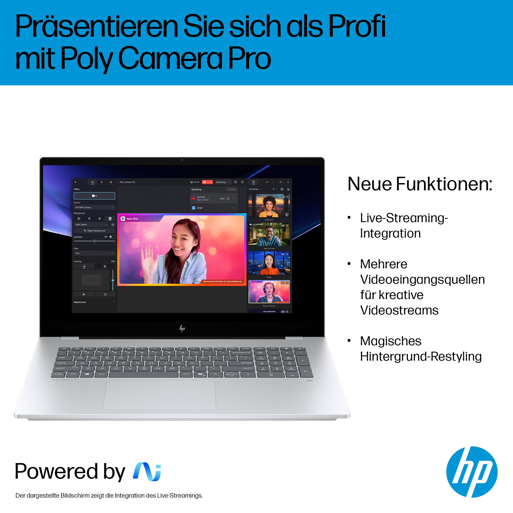 HP OmniBook 7 17.3 inch Laptop Next Gen AI PC-Intel Glacier Silver - Annotated 360-degree Spin Video - German