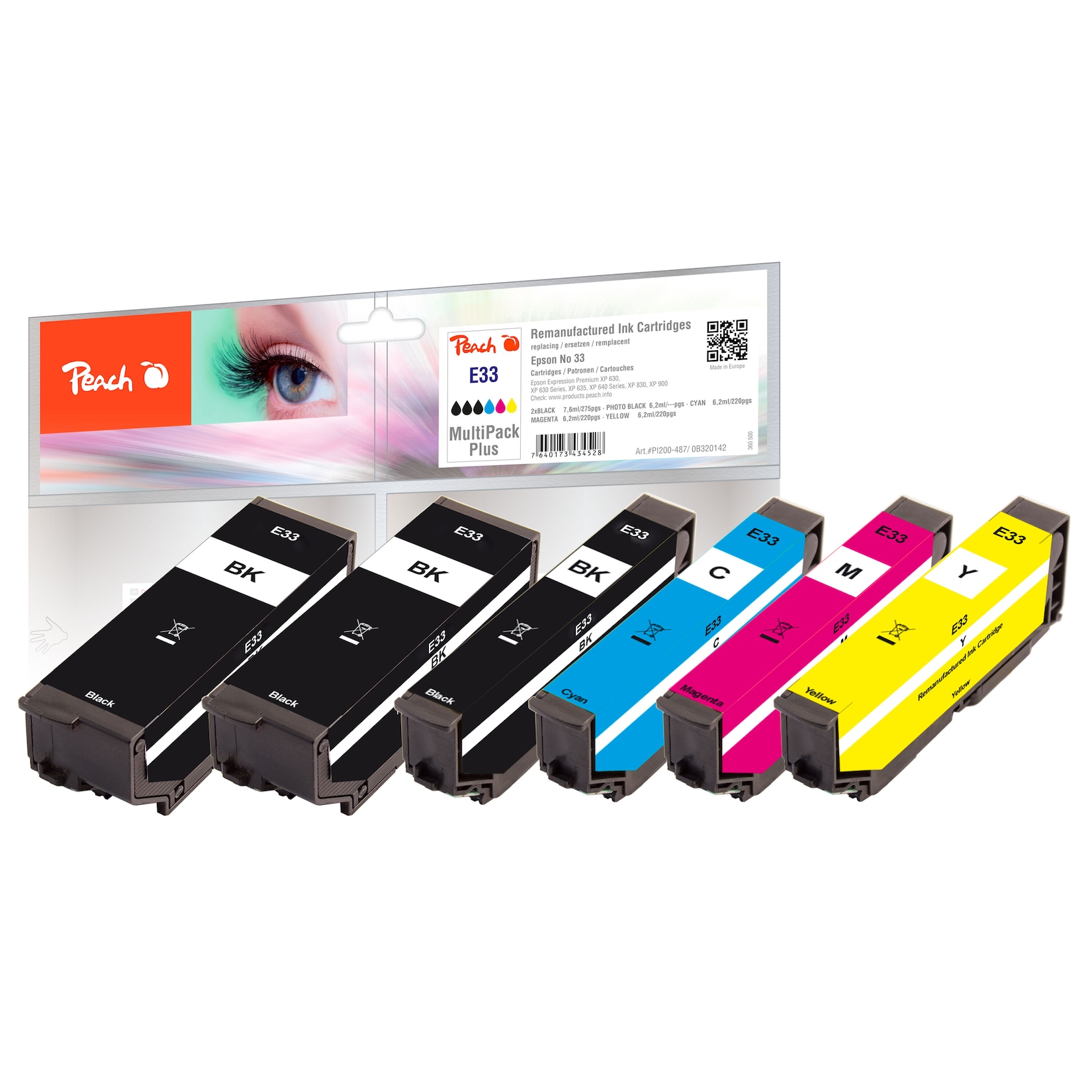 Peach Spar Packs - Sparen Sie zusätzlich gegenüber dem Einzelkauf! 6 Tintenpatronen. 1 x Peach Tintenpatrone magenta kompatibel zu Epson T3343, No. 33 m, C13T33434010 1 x Peach Tintenpatrone gelb kompatibel zu Epson T3344, No. 33 y, C13T33444010 1 x