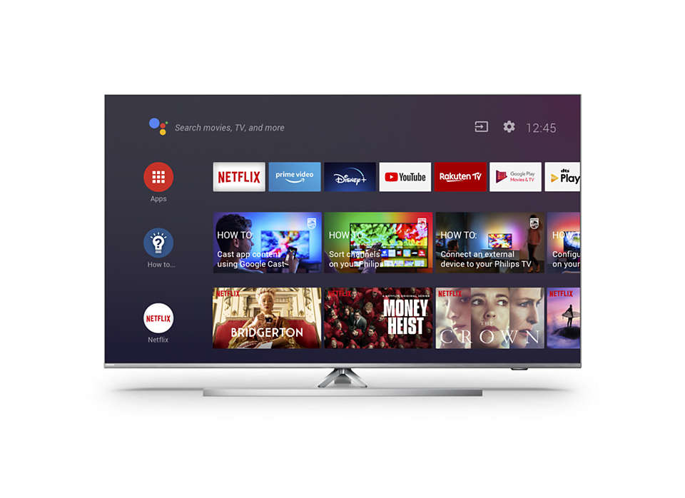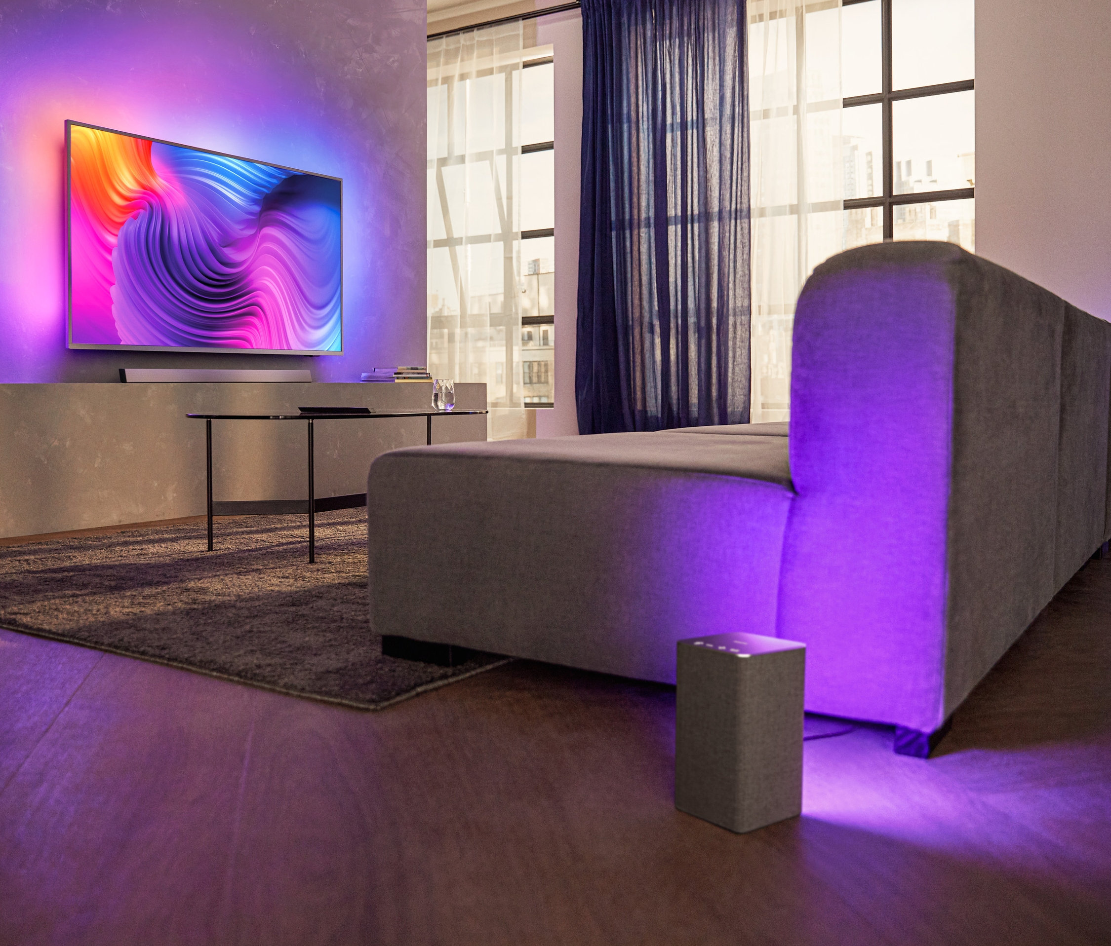 Philips-4K-UHD-Android-TV mit Ambilight »PUS 8506/12«, 43 Zoll, G (von A bis G) Farbe: Silberfarben Maße: B x H x T ca. 96 x 56 x 8 cm B x H x T Inkl. Fuß ca. 96 x 62 x 20 cm B x H x T Untergestell ca. 59 x 7 x 20 cm Inhalt: Inkl. Fernbedienung, Netzkabel, Tischfuß, 2 Batterien LR03 (AAA), Kurzanleitung, Broschüre zu rechtlichen und Sicherheitsinformationen Gewicht: Ca. 9 kg Inkl. Ständer ca. 11,4 kg Leistung: Netzstrom: AC 220 bis 240 V, 50/60 Hz. Stand-by-Stromverbrauch: < 0,3 W Technische Details: Bild/Anzeige - Anzeige: 4K Ultra HD LED - Bildschirmgröße diagonal: 43 Zoll/108 cm - Auflösung des Displays: 3.840 x 2.160 - Bildformat: 16:9 - Pixel-Engine: P5 Perfect Picture Engine - Bildoptimierung: Ultra Resolution, Dolby Vision, HDR10+, Micro Dimming Pro, ISF-Farbmanagement Unterstützte Display-Auflösung - Computereingänge auf allen HDMI: Unterstützt HDR, HDR10/ HLG, Bis zu 4K UHD 3.840 x 2.160 bei 60 Hz, Unterstützt HDR, HDR10+/HLG - Videoeingänge auf allen HDMI: Bis zu 4K UHD 3.840 x 2.160 bei 60 Hz, Unterstützung für HDR, HDR10/HLG (Hybrid Log Gamma), HDR10+/Dolby Vision Android TV - Betriebssystem: Android TV™ 10 (Q) - Vorinstallierte Apps: Google Play Movies*, Google Play Music*, Google-Suche, YouTube, Netflix, Amazon Instant Video, BBC iPlayer, Amazon Prime Video, Disney+, Fitness App, Spotify - Speicherkapazität (Flash): 16 GB* Verarbeitung - Verarbeitungsleistung: Quad Core Tuner/Empfang/Übertragung - HEVC-Unterstützung - Digitales Fernsehen: DVB-T/T2/T2-HD/C/S/S2 - MPEG-Unterstützung: MPEG2, MPEG4 - Videowiedergabe: PAL, Secam - TV-Programmführer*: 8-Tage-EPG - Signalstärkeanzeige - Videotext: 1.000 Seiten Hypertext Anschlüsse - Anzahl HDMI-Anschlüsse: 4 - Anzahl der USB-Anschlüsse: 2 - Kabellose Verbindungen: WLAN 802.11ac, 2 x 2 Dualband, Bluetooth 5.0 - Weitere Anschlüsse: Satellitenanschluss, Common Interface Plus (CI+), Digitaler Audio-Ausgang (optisch), Ethernet-LAN RJ-45, Kopfhörer-Ausgang, Service-Anschluss - HDMI Funktionen: 4K, Audio-Rückkanal - EasyLink (HDMI-CEC): Fernbedienungs-Durchleitung, System-Audiosteuerung, System Standby-Modus, System-Start - HDCP 2.3: Ja, auf allen HDMI - HDMI ARC: Ja, für alle Anschlüsse - HDMI eARC: Ja, auf HDMI2 - HDMI VRR: Ja, auf HDMI1 und HDMI2 Ton - Ausgangsleistung (RMS): 20 W - Verbesserung der Soundqualität: Dolby Atmos, KI-Sound, Klare Dialoge, NIGHT MODE (Nachtbetrieb), K.I.-Equalizer, Dolby-Bassverstärkung, Dolby-Lautstärkeregler, DTS Play-Fi, Personalisierung des Mimi-Sounds - Lautsprecherkonfiguration: 2 x 10 W Full-Range-Lautsprecher Sonstige Hinweise: Garantiegeber: Philips GmbH, Röntgenstraße 22, 22335 Hamburg Herstellergarantie: 2 Jahre Garantieumfang: auf Material- oder Herstellfehler Räumlicher Geltungsbereich: Deutschland, Österreich,Schweiz, Ungarn, Slowakei, Tchechien, Türkei, Polen Hersteller-Artikel-Nummer: 43PUS8506 3-seitiges Ambilight: Emotionen über den Bildschirm hinausLED-TV mit 108 cm (43 Zoll) Bildschirmdiagonale4K-UHD-Auflösung und P5 Perfect Picture EngineUnterstützung für HDR 10+Dolby Vision und Dolby Atmos – Bild und Ton in KinoqualitätAndroid-TV mit integriertem Google-Assistant (unterstützt Alexa)WLAN, Bluetooth®, 4x HDMI, 2x USB, CI+-Modul-Schacht