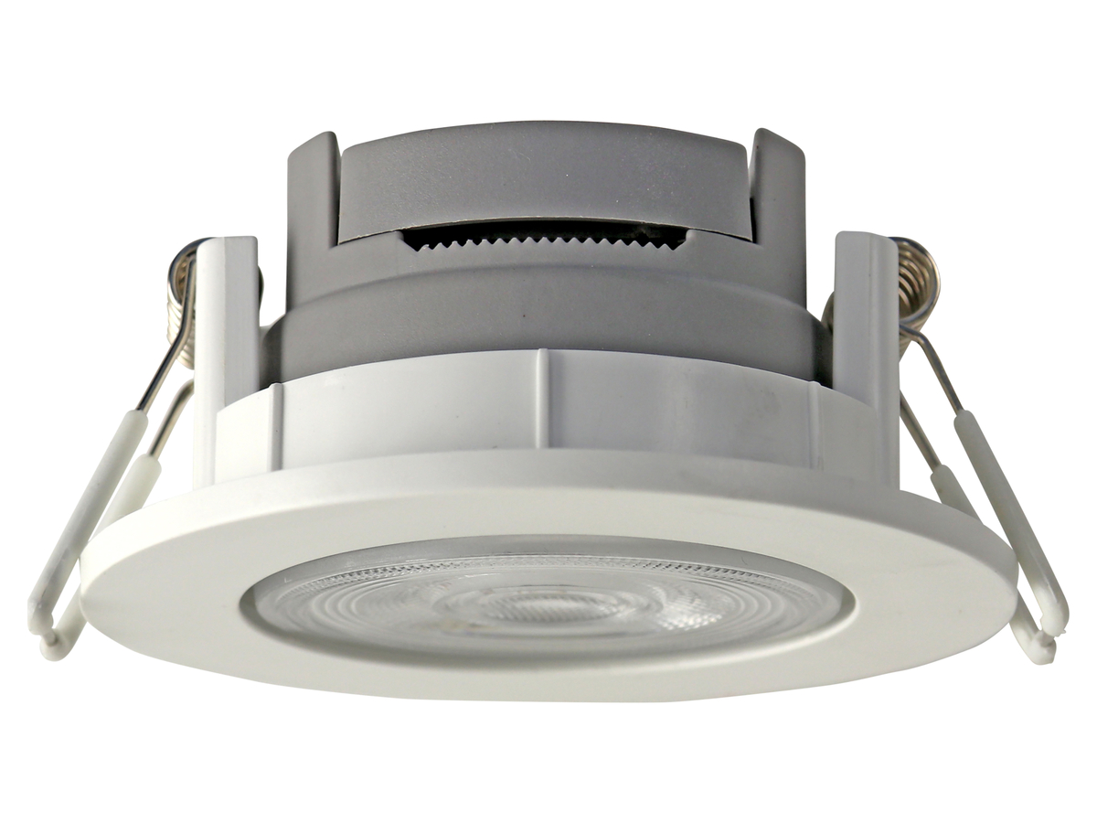 Diese robuste LED-Einbauleuchte sorgt für eine angenehme Ausleuchtung im gewerblichen als auch im privaten Bereich. Darüber hinaus werden durch die lange Lebensdauer Wartungskosten reduziert. Durch das zeitlose Design lässt sich diese Leuchte in allen Bereichen einsetzen und bringt so Eleganz in Ihre Räume. Durch die Snap-Befestigung eignet sie sich perfekt für den Einsatz in Hohlraumdecken. Geeignet für Büros, Konferenzräume, Ausstellungsräume, Lobbys, Kabinen, Küchen usw. Features: Neigbare LED Decken-Einbauleuchten mit 4,5 W Überzeugender Lichtausbeute Super für Zwischendecken Einfache Installation durch Snap-Befestigung Robustes Gehäuse Schwenkbar +15°/-15° Technische Daten: Betriebsspannung: 230 V~ Produkt enthält eine Lichtquelle der Energieeffizienzklasse F (EEK-Spektrum A – G) Gewichteter Energieverbrauch: 4,5 kWh/1000 h Betriebsspannung: 230 V~, 50 Hz Leistung: 4,5 W Farbtemperatur: 2700 K Lichtfarbe: warmweiß Lichtstrom: 380 lm Lichtausbeute: 85 lm/W Farbwiedergabeindex (Cri): > 80 Ra Leistungsfaktor: >0;67 Abstrahlwinkel: 36° Dimmbar: nein Mittlere Lebensdauer: 20.000 h Schaltzyklen: 20.000x Gehäusefarbe: weiß Einbau-∅: 72 mm Maße (∅xH): 85x42 mm Lieferumfang: LED-Einbauleuchte (Leuchtmittel nicht austauschbar) Bedienungsanleitung
