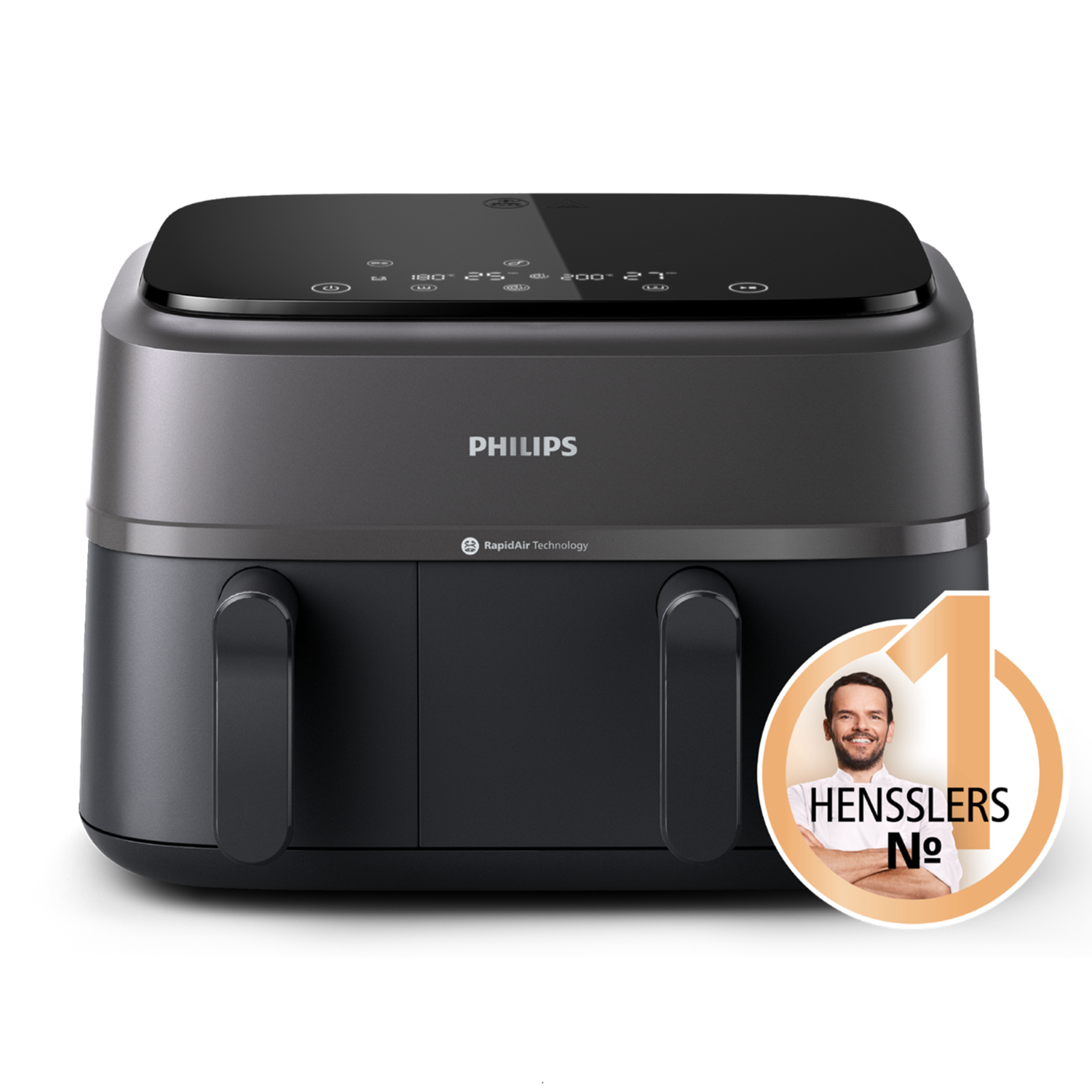 Timer-Funktion: Synchronisiert die Garzeiten in den beiden Körben für gleichzeitig heiß servierte Gerichte